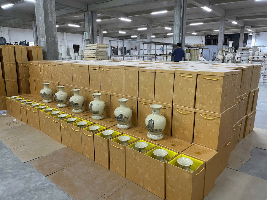 Bình Bảo Châu In Hoạ Tiết Hữu Nghị Việt - Lào Cao 34cm Vẽ Vàng