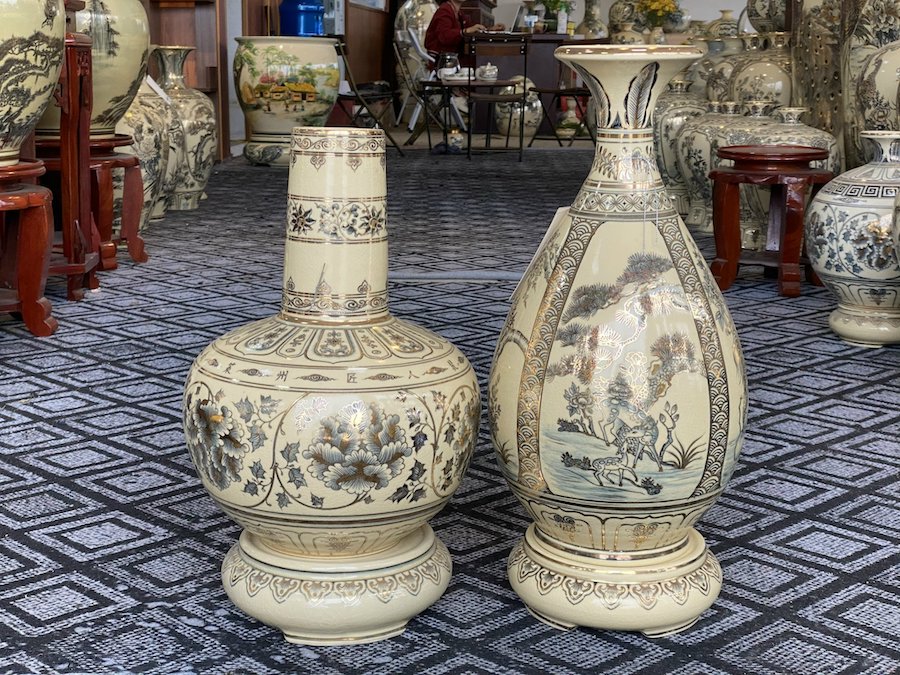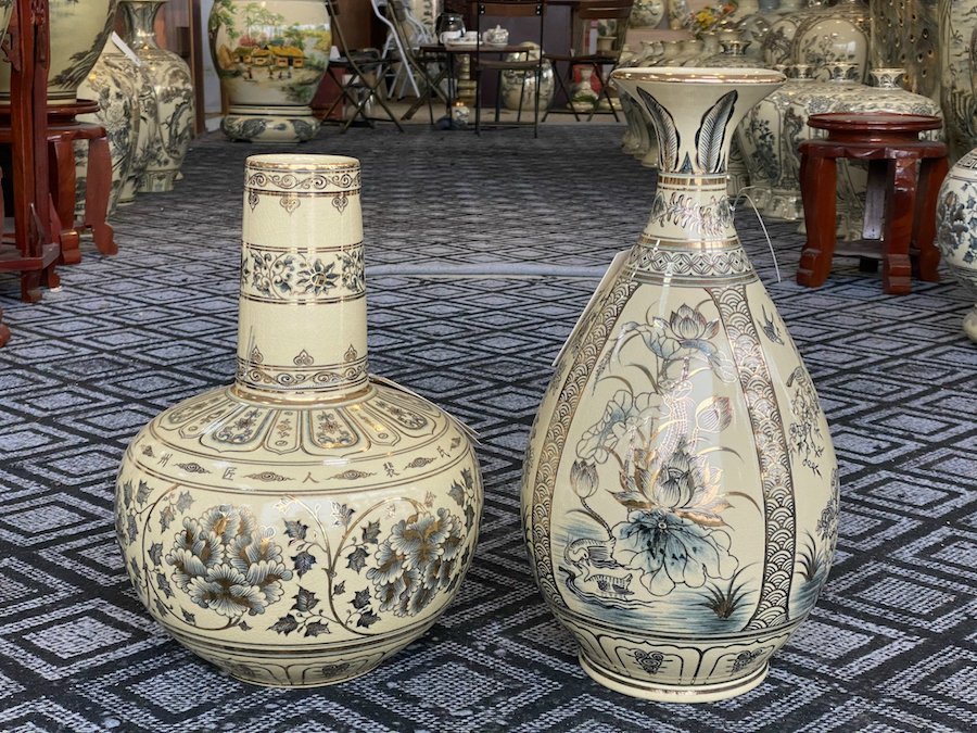 Bình Hoa Lam Tỳ Bà S2 Gốm Chu Đậu Vẽ Vàng