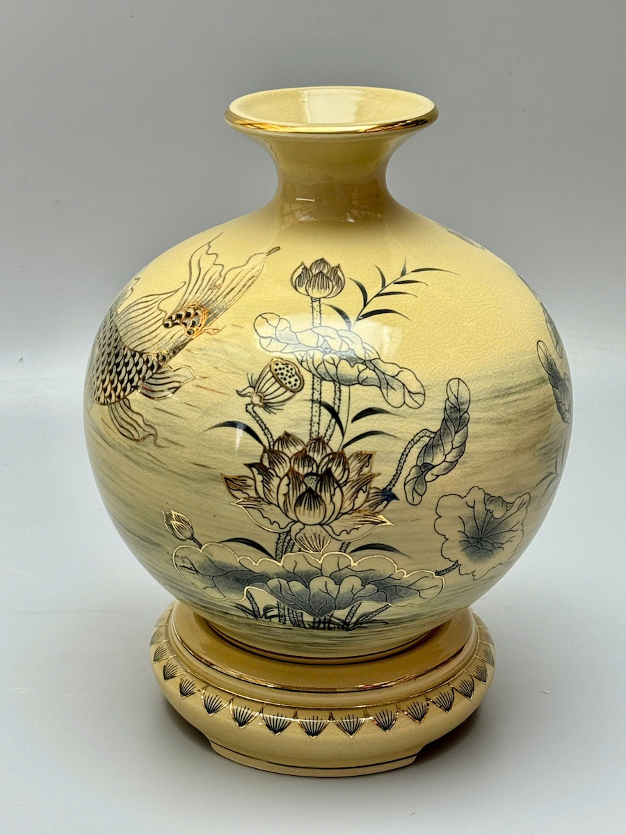 Bình Hút Lộc Cá Chép Hoa Sen Cao 29,5cm Gốm Vẽ Vàng Thoáng