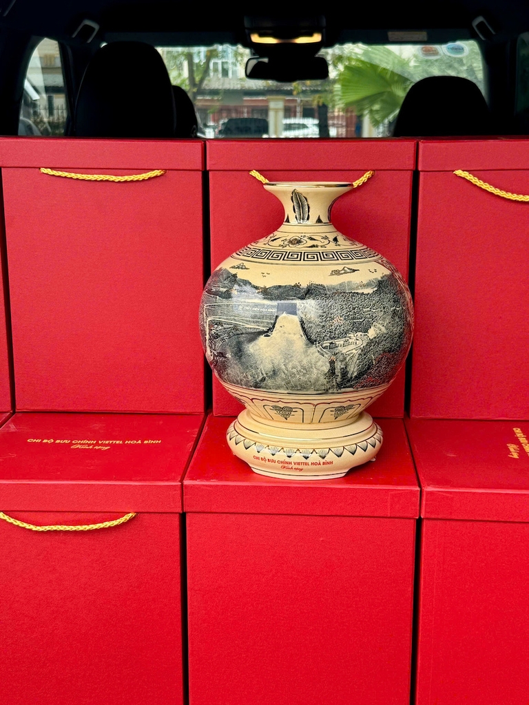 Bình Hút Lộc Cao 29,5cm Hoạ Tiết Thuỷ Điện Sông Đà Vẽ Vàng