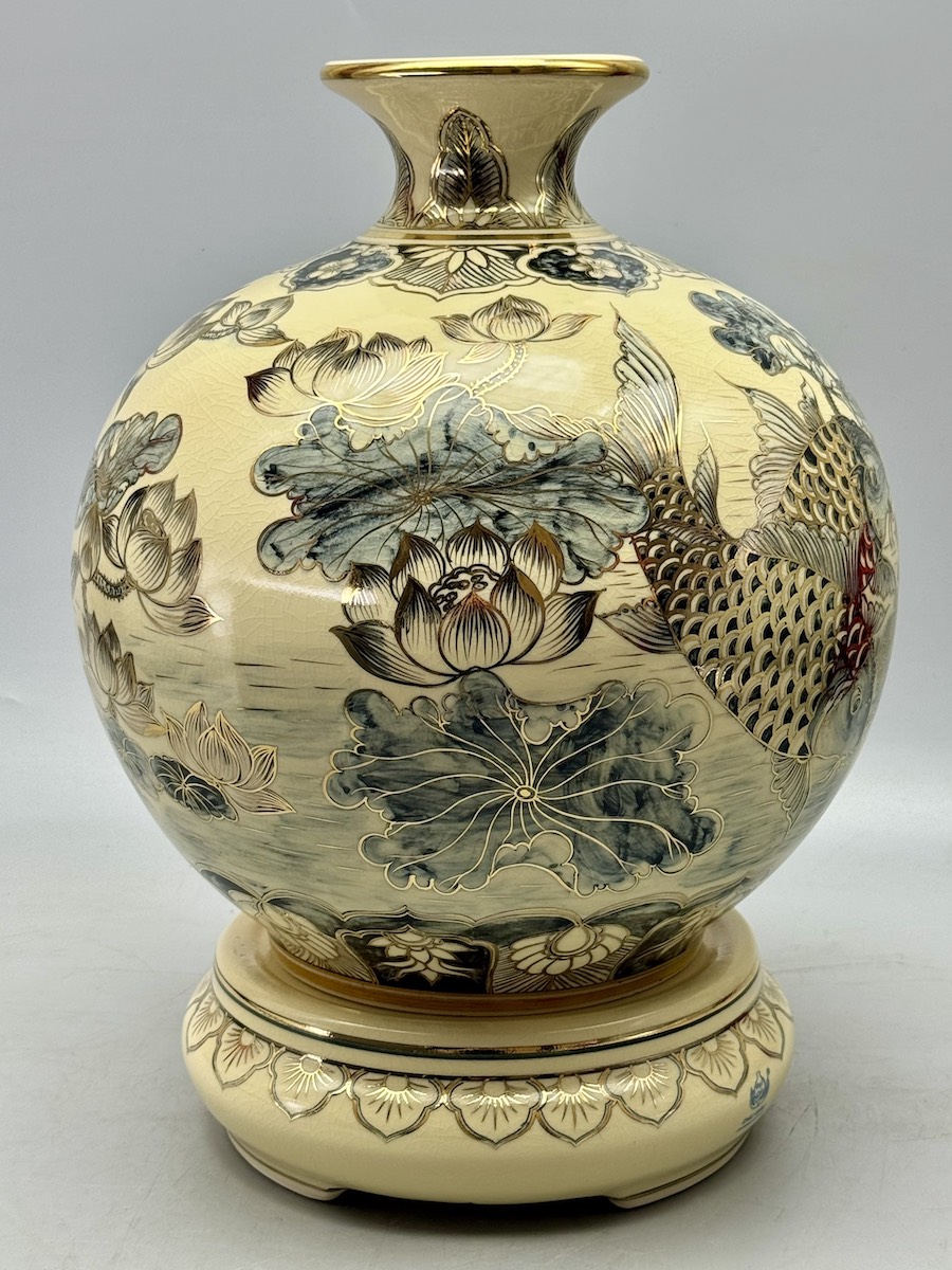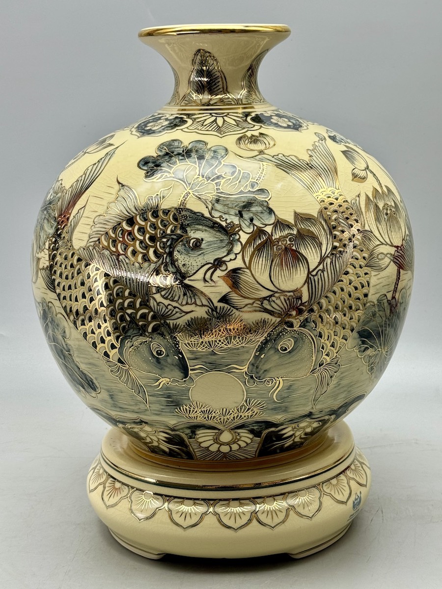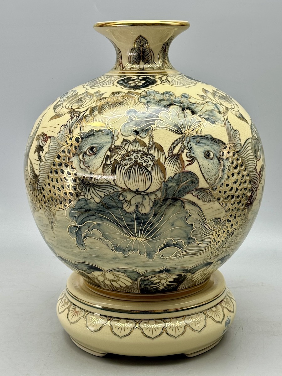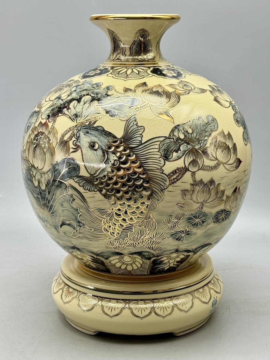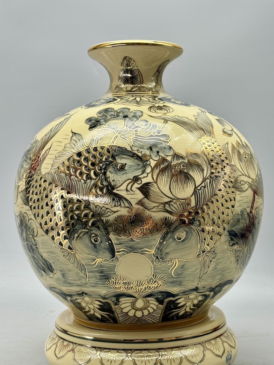 Bình Hút Lộc Lý Ngư Vọng Nguyệt Cao 42cm Gốm Chu Đâu Vẽ Vàng