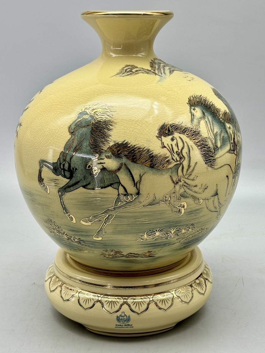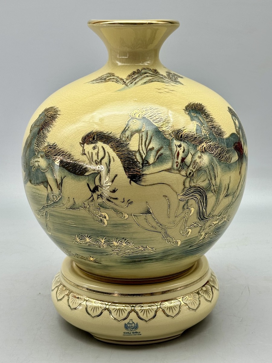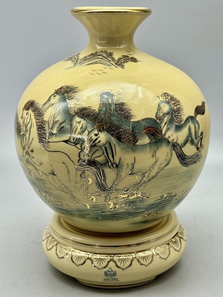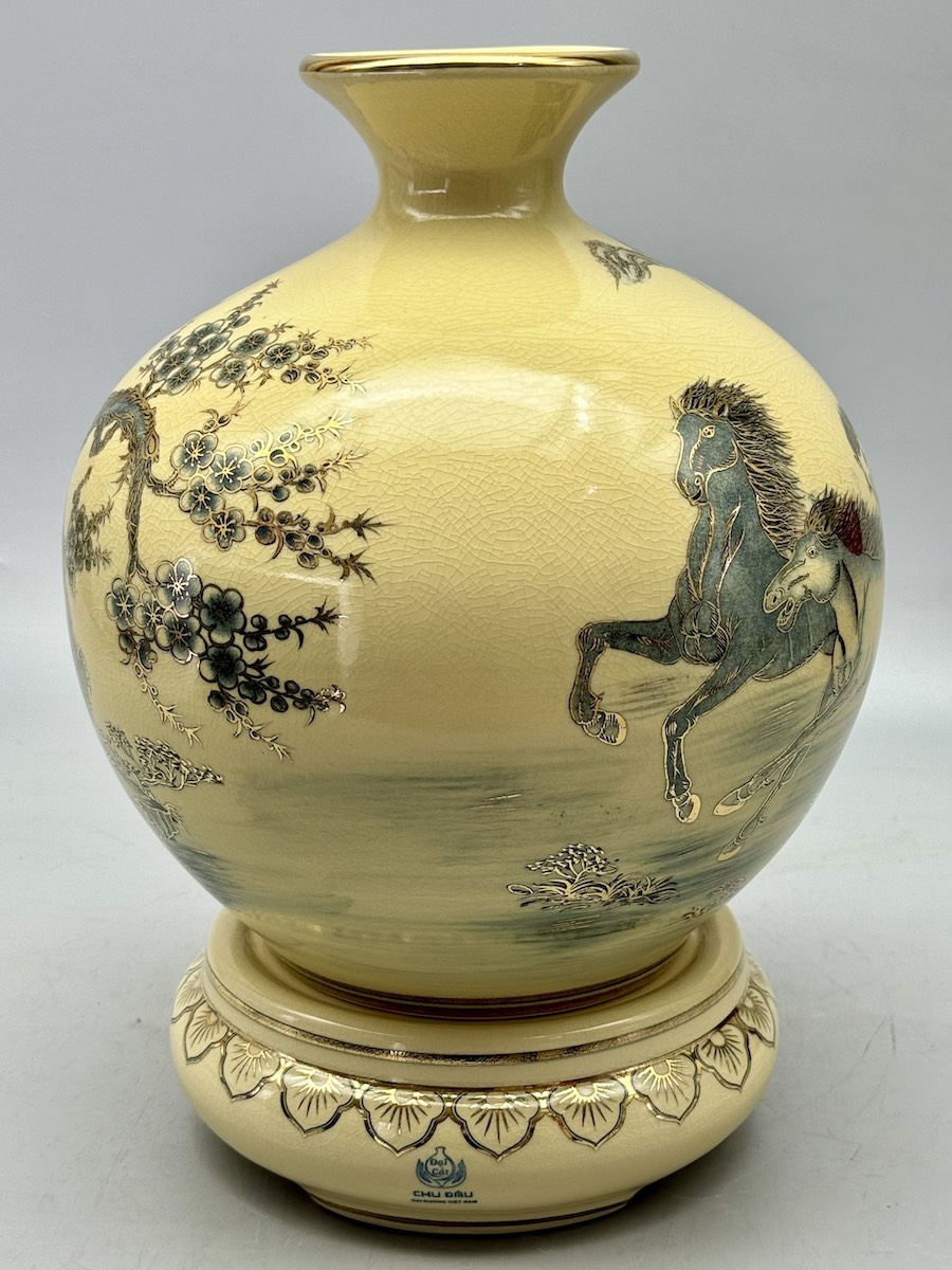 Bình Hút Lộc Mã Đáo Thành Công H30 Gốm Chu Đậu Vẽ Vàng 24K RG-000576