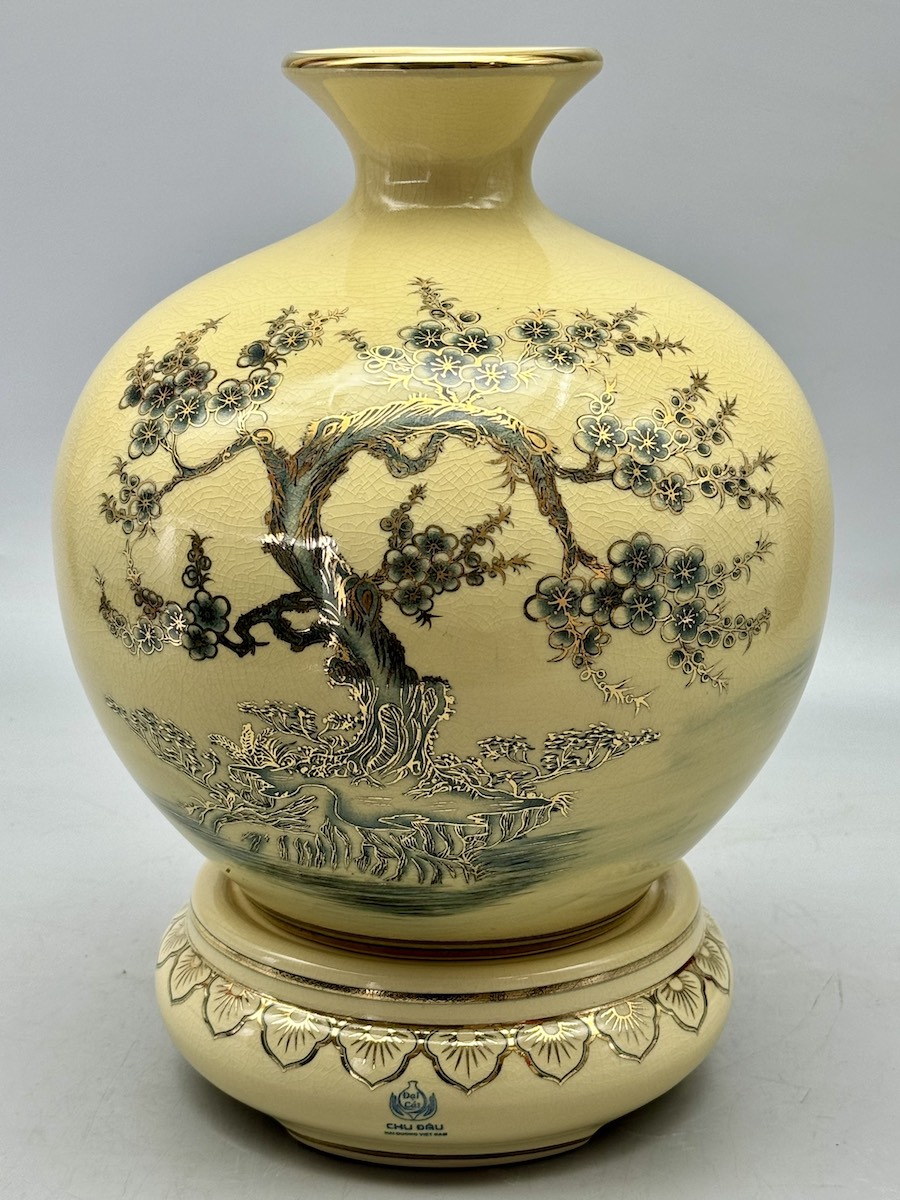 - Bình hút lộc gốm Chu Đậu Mã Đáo Thành Công Vẽ Vàng 24K là một trong những kiệt tác nghệ thuật gốm sứ men rạn của làng gốm Chu Đậu (tỉnh Hải Dương). Tính tới thời điểm hiện tại, gốm Chu Đậu có mặt trên 32 quốc gia và được mệnh danh là “tinh hoa” của gốm sứ cổ thế giới.