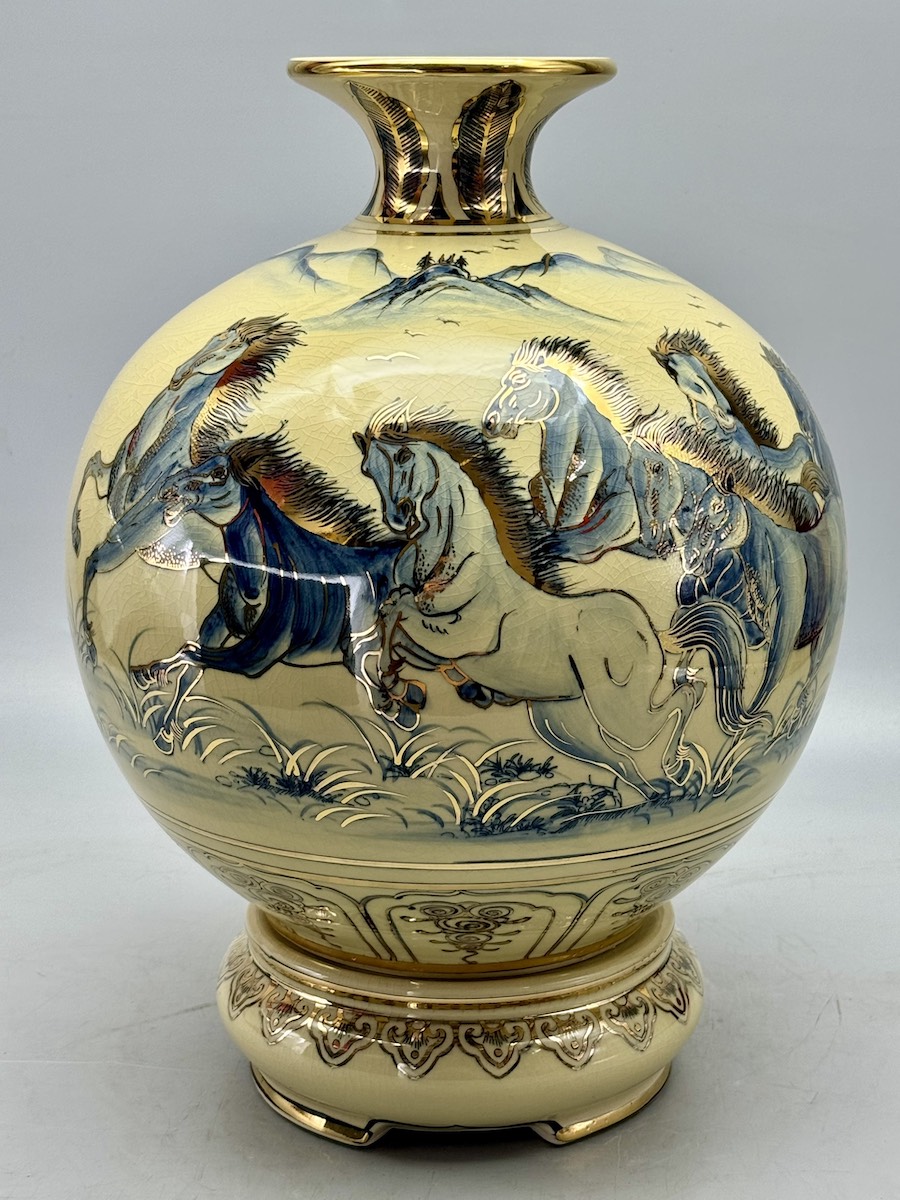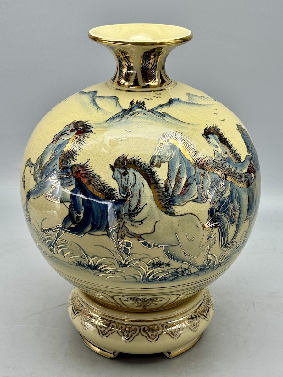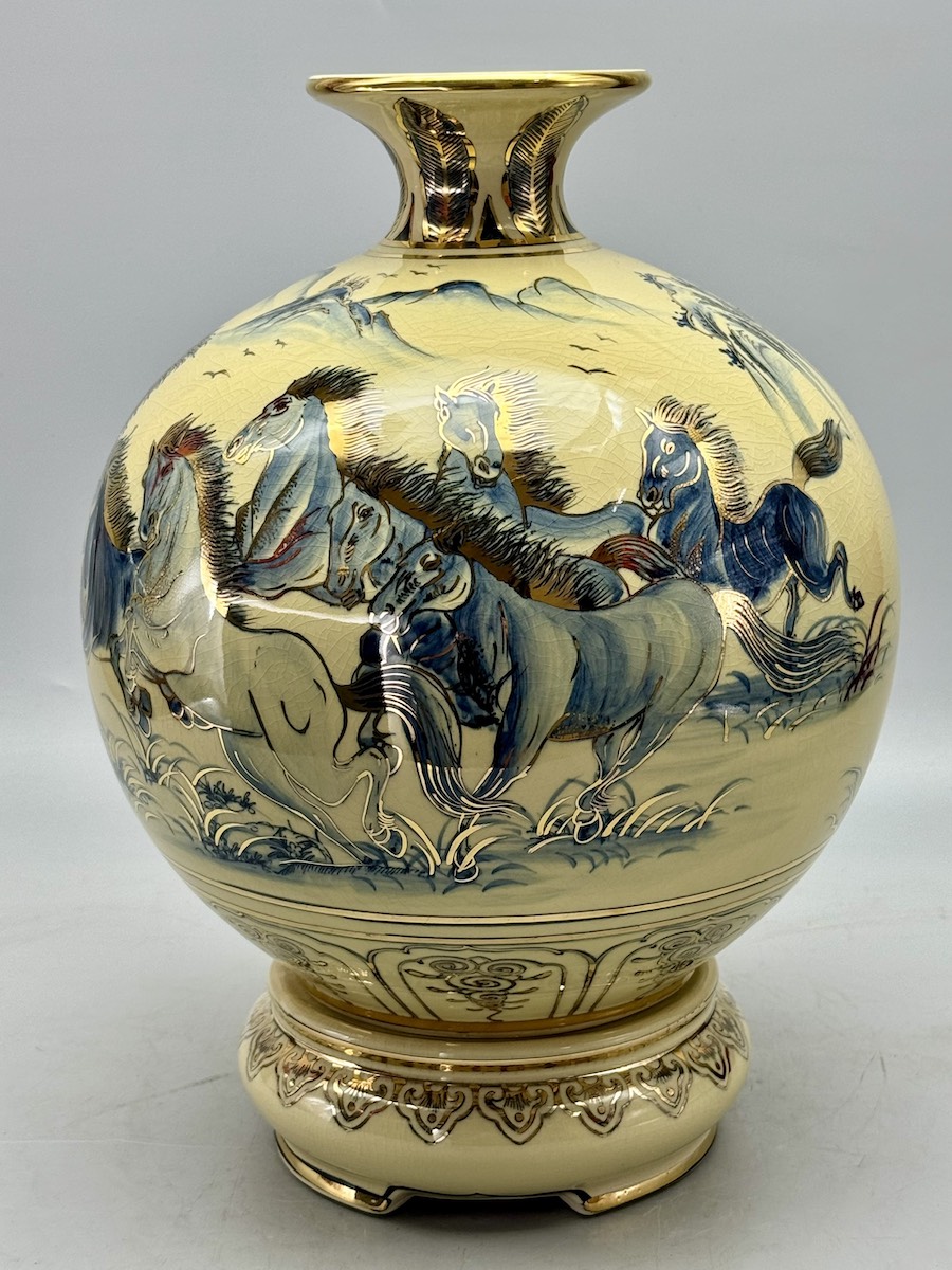 Bình Hút Lộc Mã Đáo Thành Công H35 Gốm Chu Đậu Vẽ Vàng