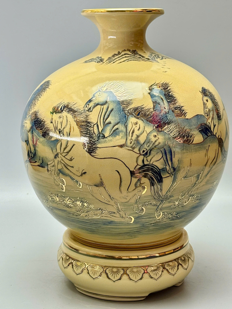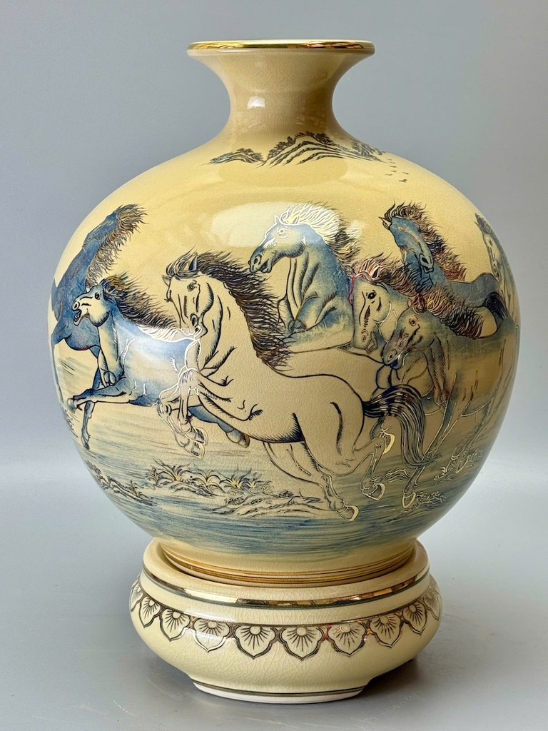 Bình Hút Lộc Mã Đáo Thành Công Xanh Coban Cao 42cm Gốm Vẽ Vàng