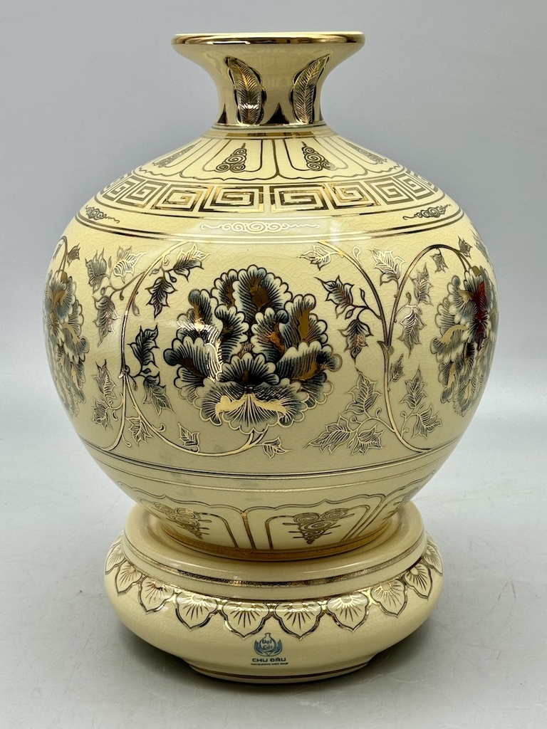 - Chất liệu: Gốm men rạn vẽ vàng kim