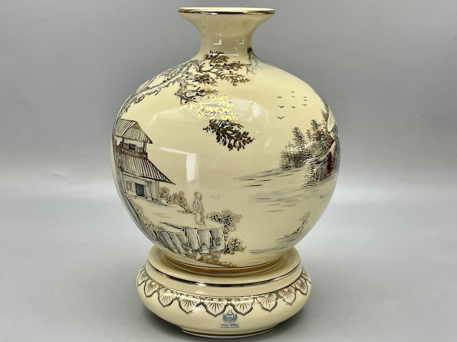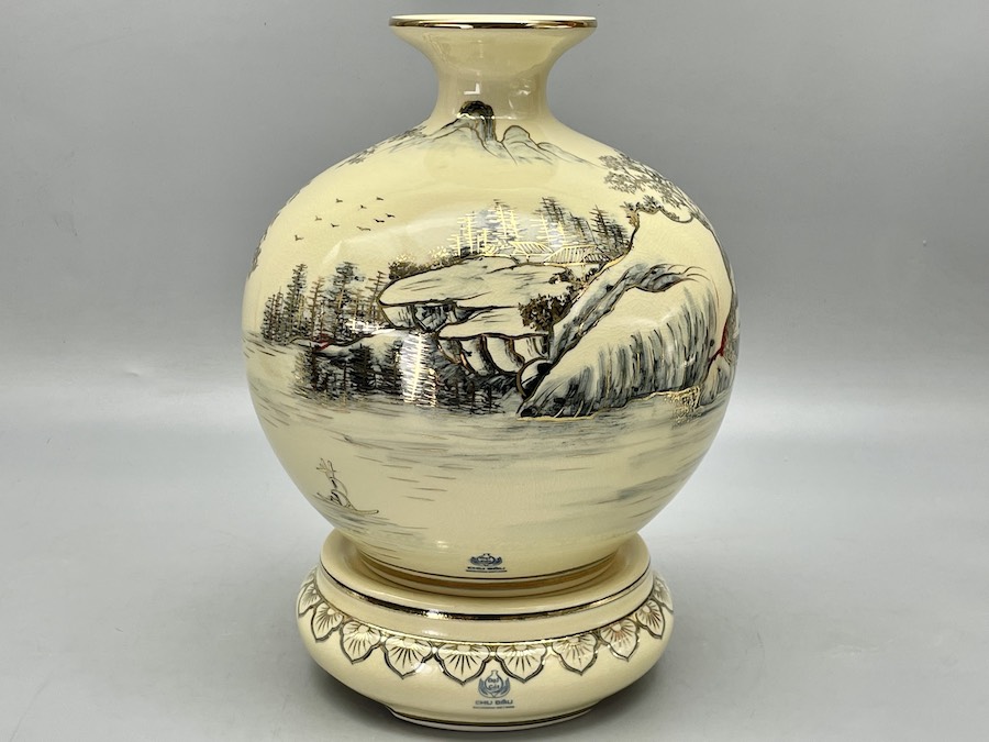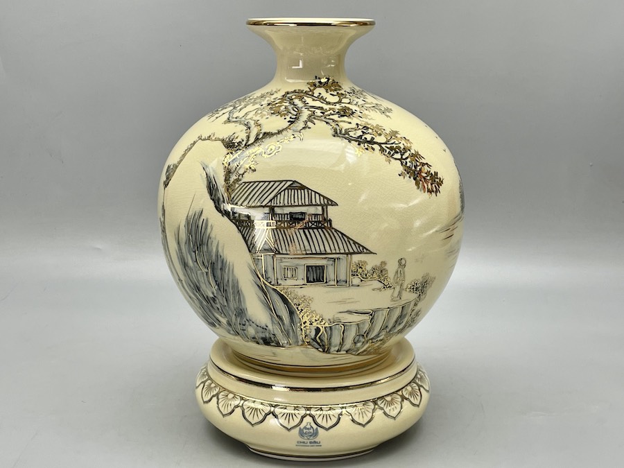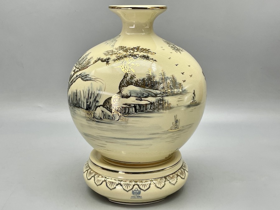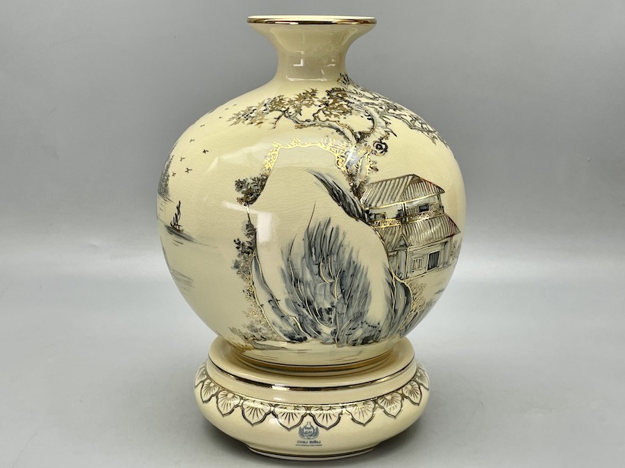 Bình Hút Lộc Sơn Thuỷ Hữu Tình H30 Gốm Chu Đậu Vẽ Vàng