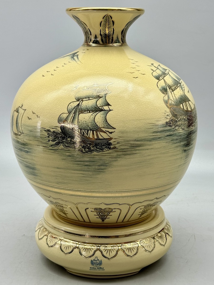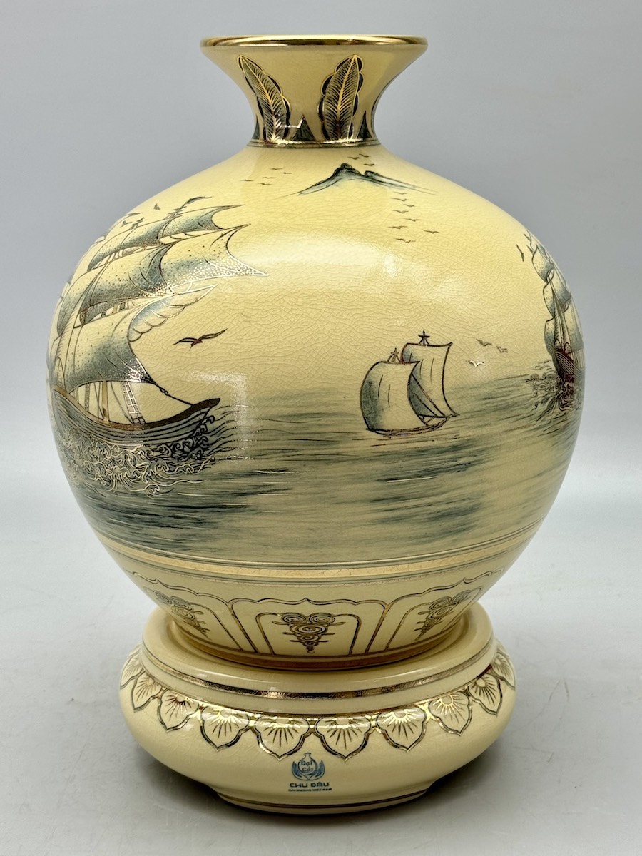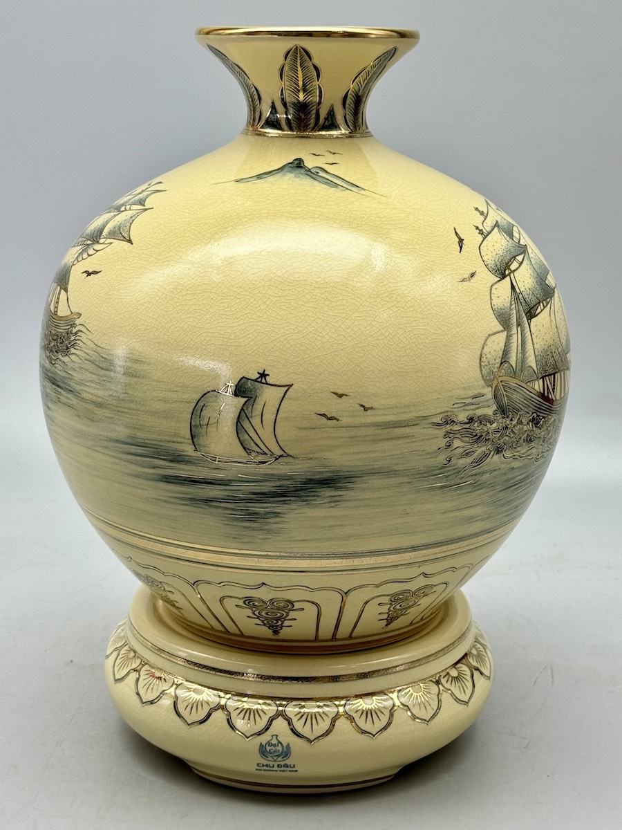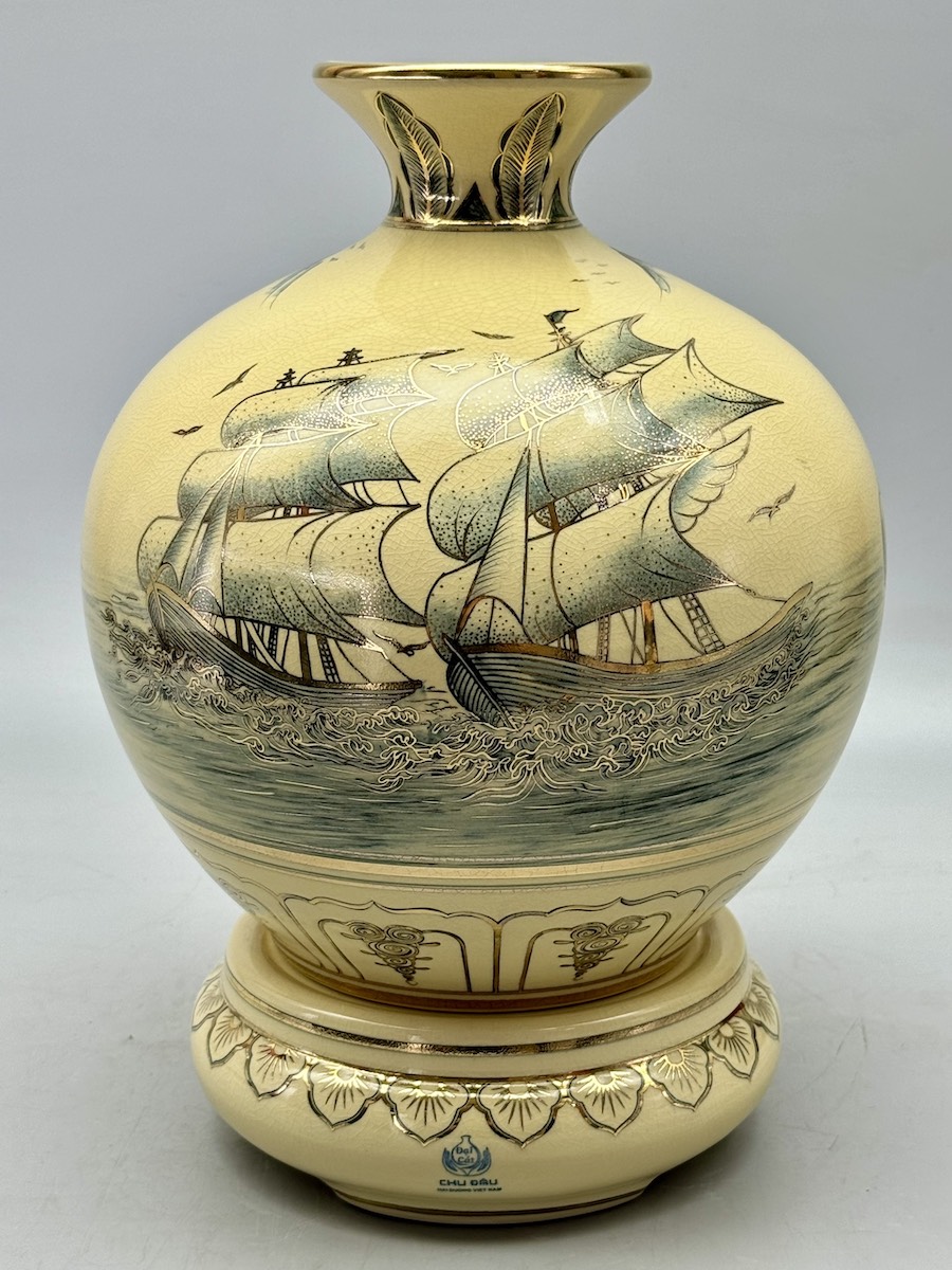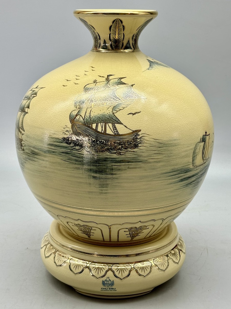 Bình Hút Lộc Thuận Buồm Xuôi Gió H30 Gốm Chu Đậu Vẽ Vàng 24K RG-000580 - Quà tặng ý nghĩa giúp mọi sự tốt đẹp xuôi chèo mát mái.