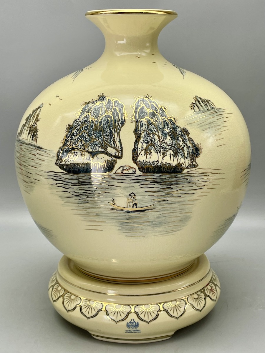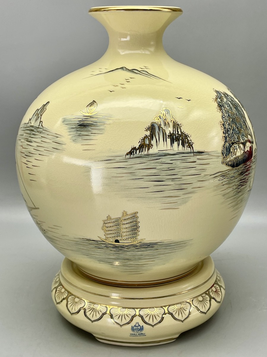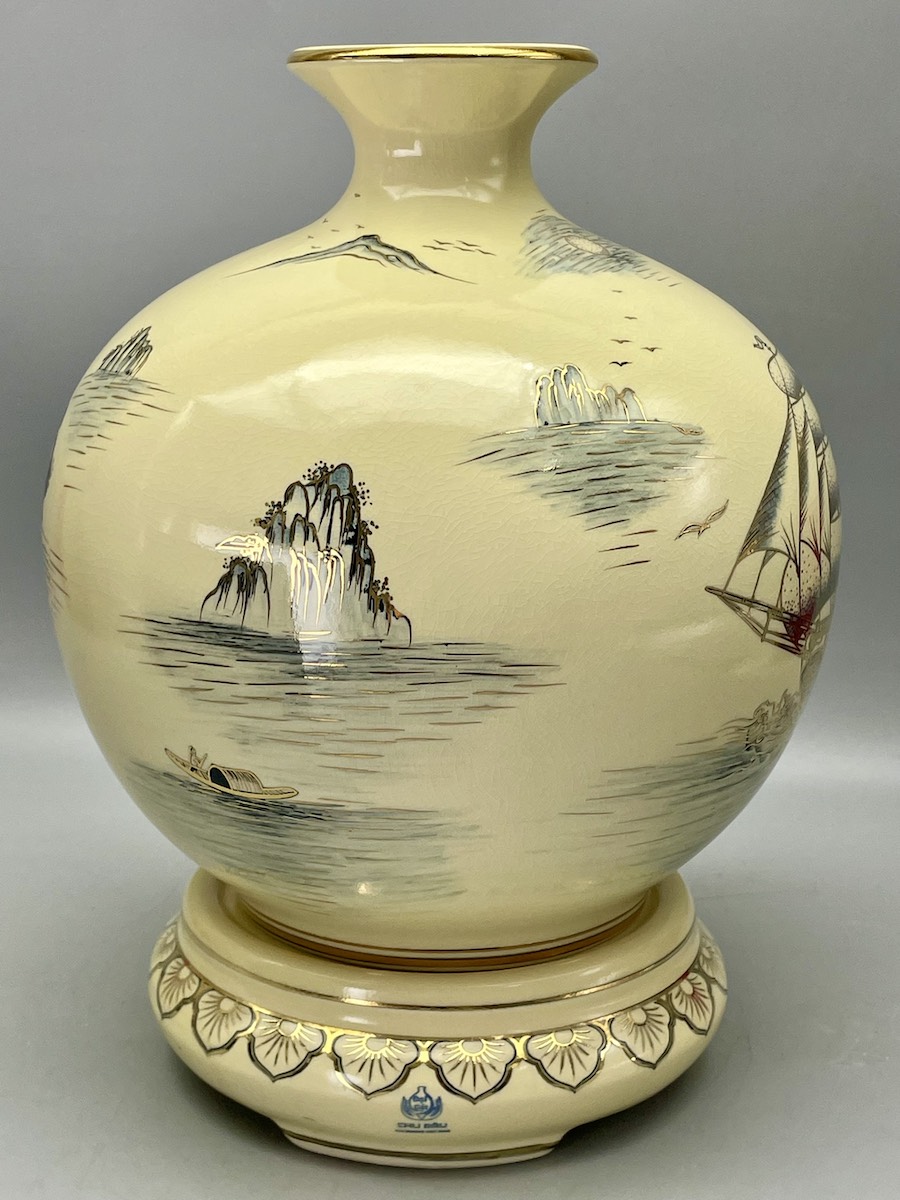 Bình Hút Lộc Thuận Buồm Xuôi Gió H35 Gốm Chu Đậu Vẽ Vàng