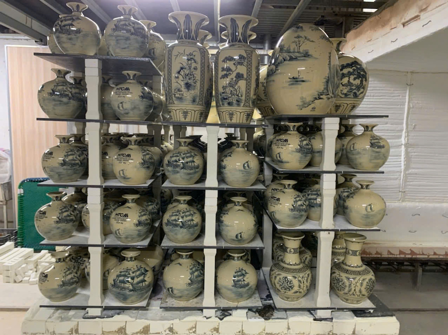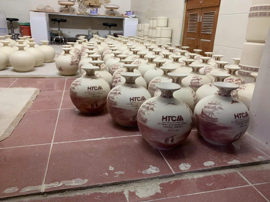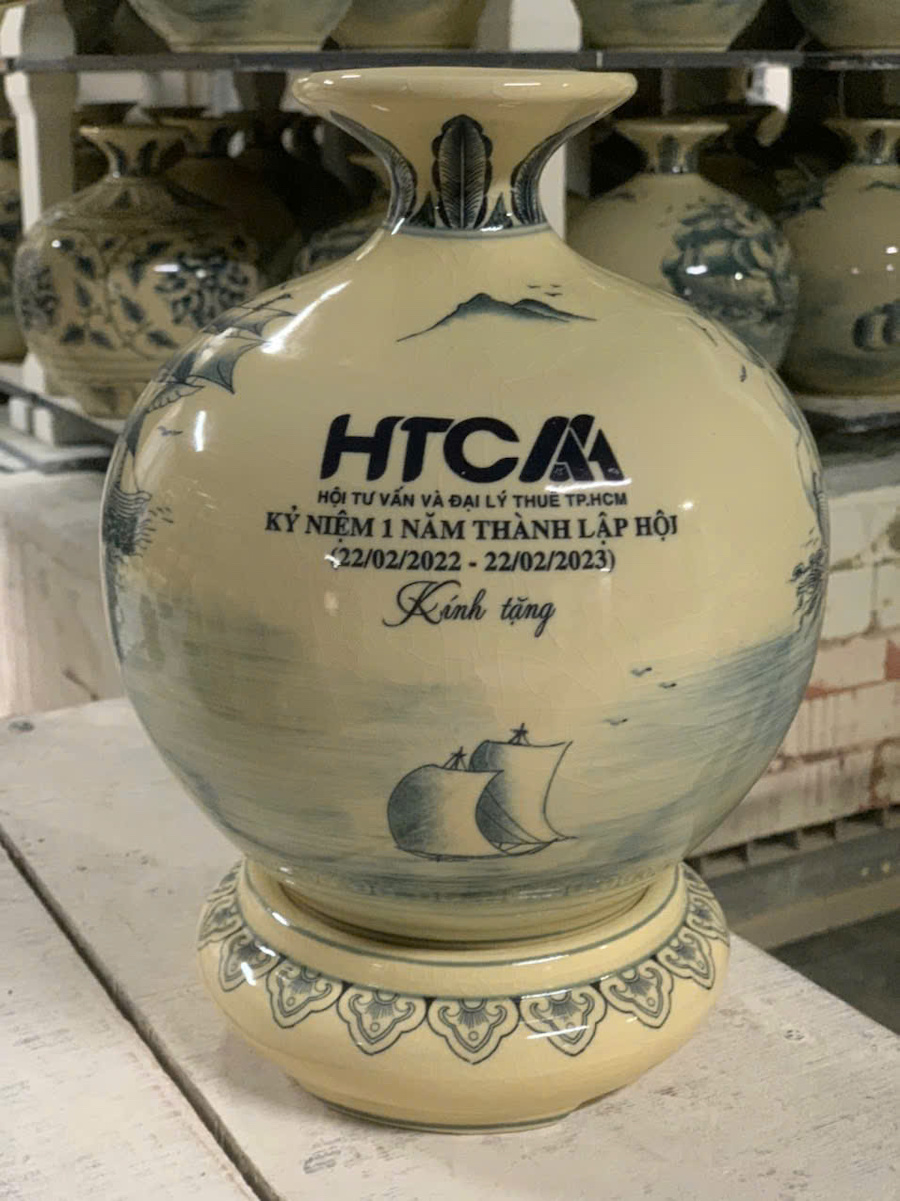 Bình Hút Lộc Thuận Buồm Xuôi Gió In Logo Đơn Vị Cao 29cm Gốm Chu Đậu Truyền Thống