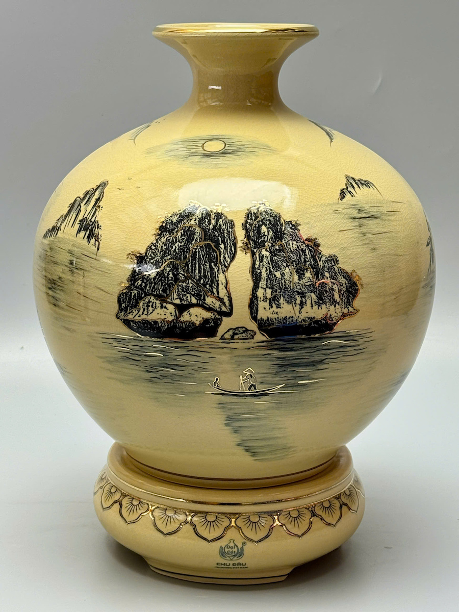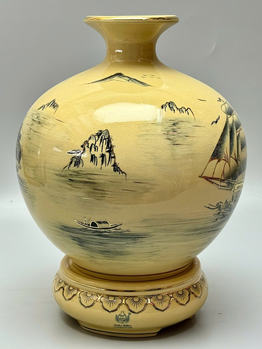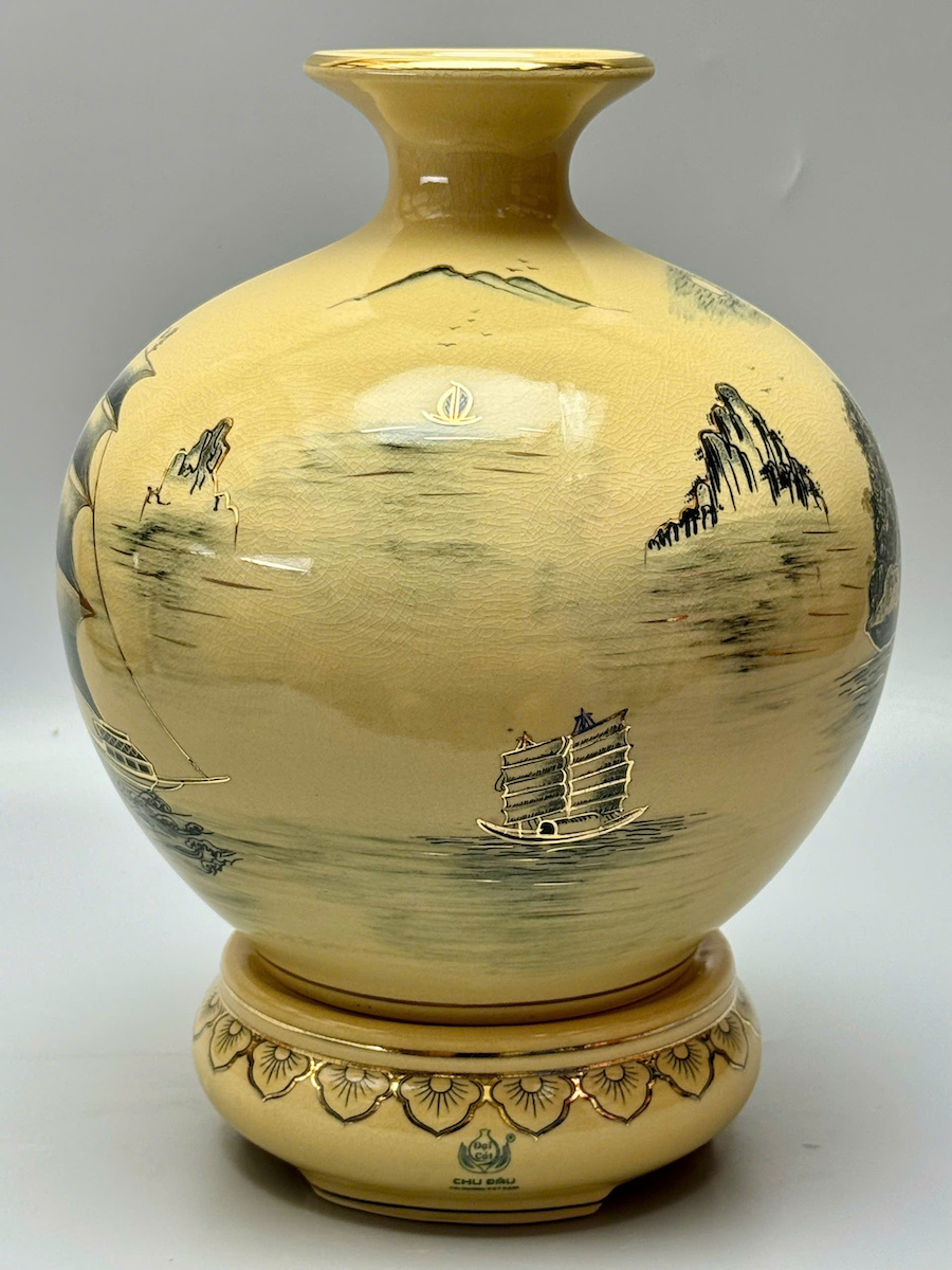 Bình Hút Lộc Thuận Buồm Xuôi Gió - Vịnh Hạ Long Cao 36cm Gốm Vẽ Vàng Thoáng