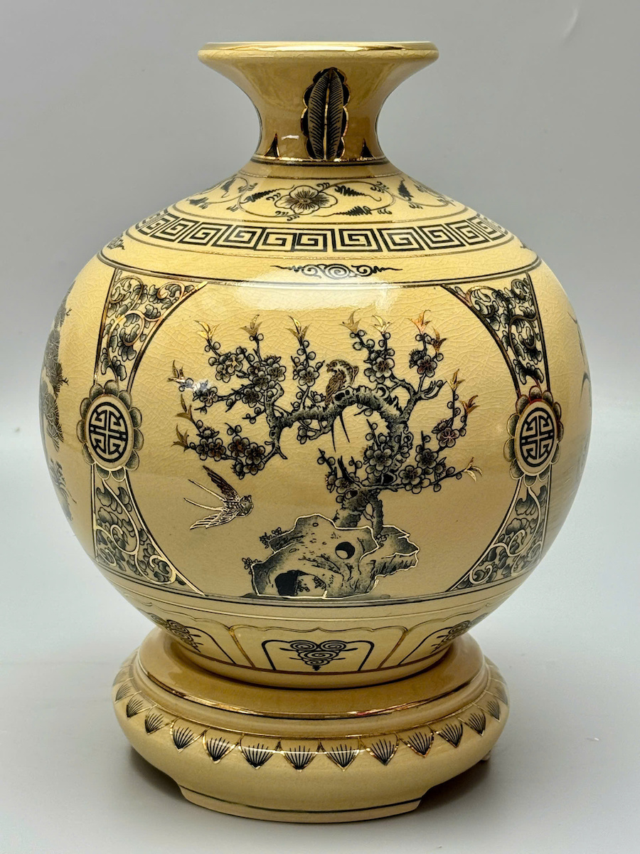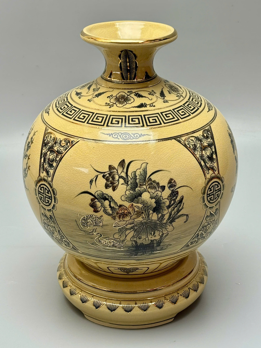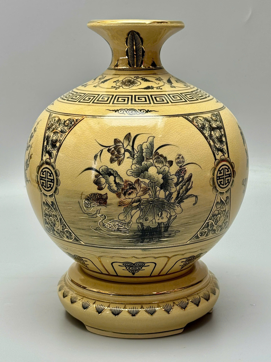 Bình Hút Lộc Tứ Cảnh Bốn Mùa Cao 29,5cm Gốm Vẽ Vàng Thoáng