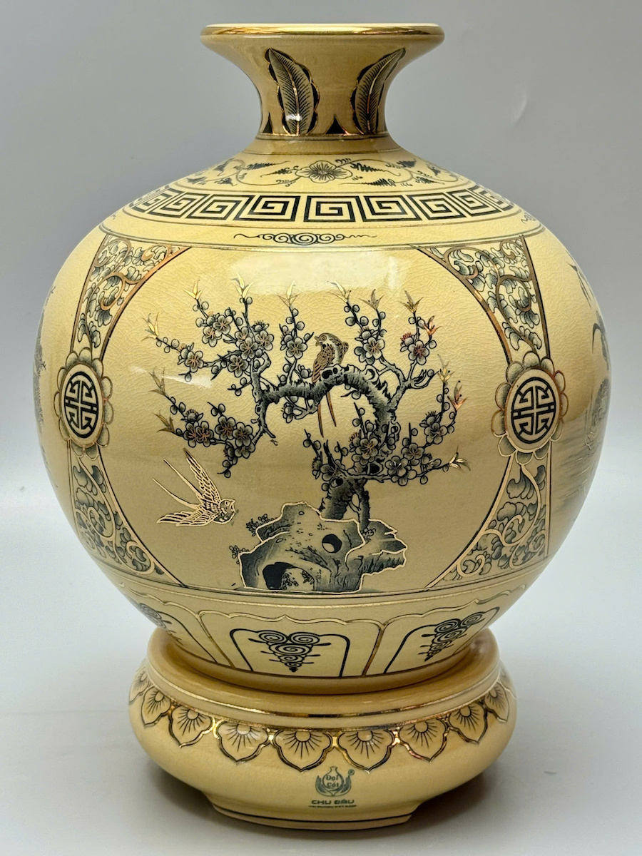 Bình Hút Lộc Tứ Cảnh Bốn Mùa Cao 36cm Gốm Vẽ Vàng Thoáng