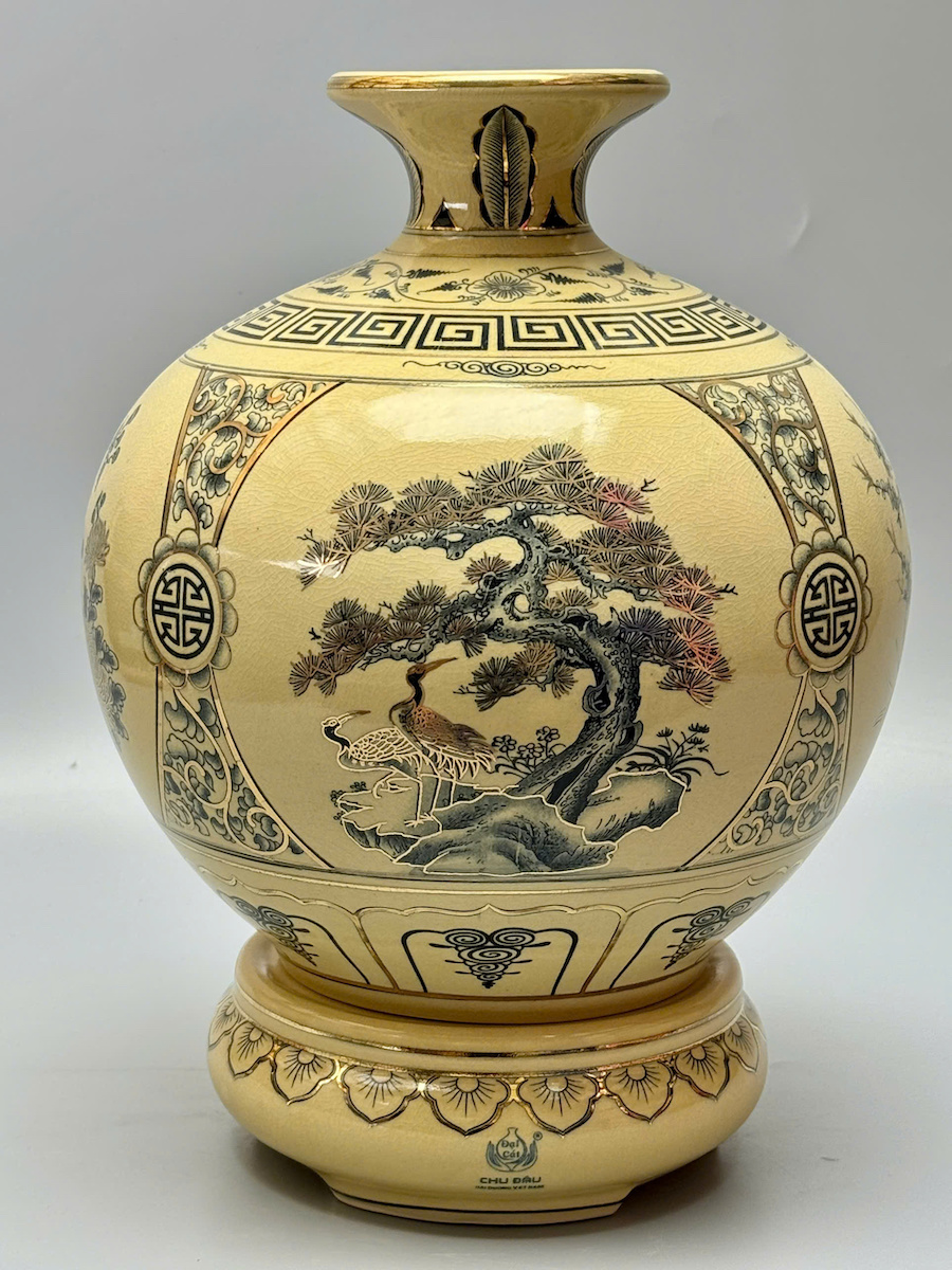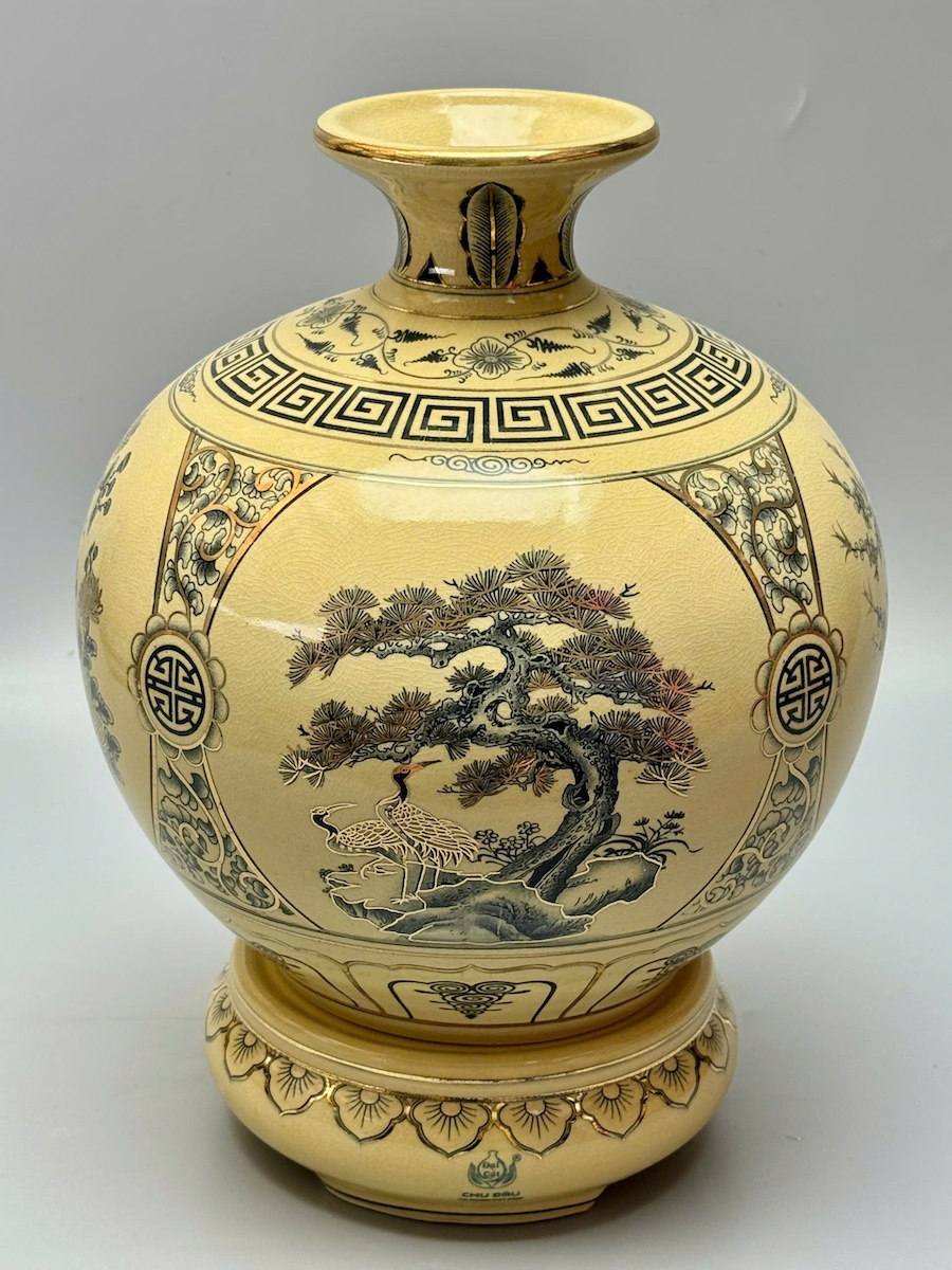 - Chất liệu : Gốm men rạn vẽ vàng thoáng