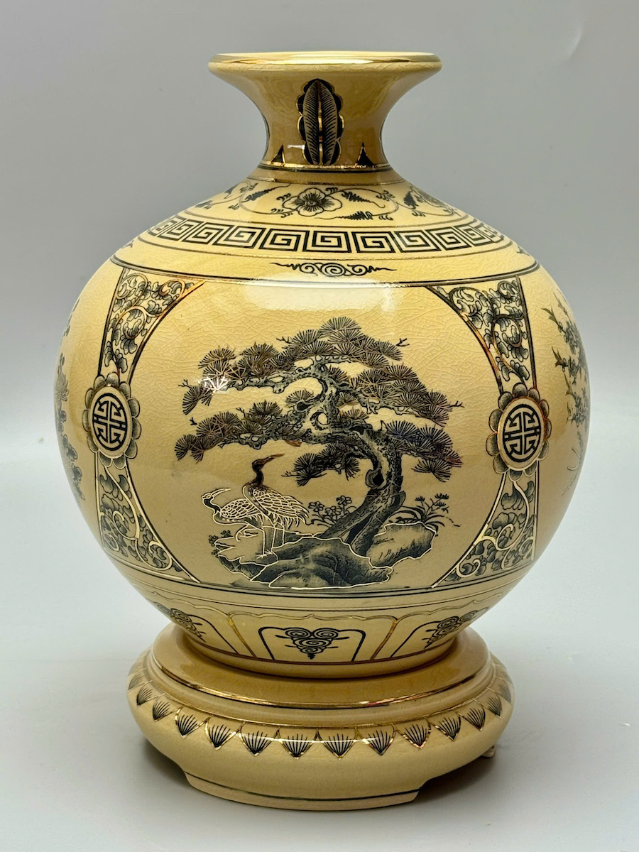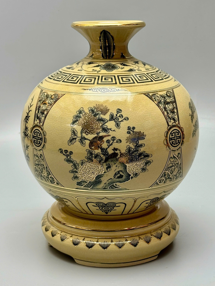 - Chất liệu : Gốm men rạn vẽ vàng thoáng