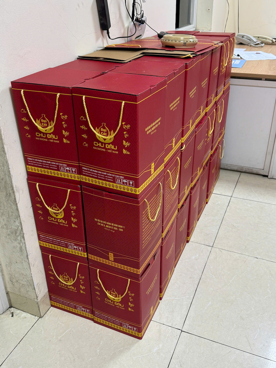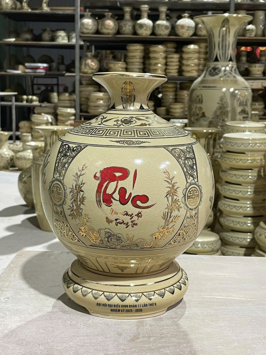 Bình Hút Lộc Tứ Cảnh Chữ Phúc Cao 29,5cm Gốm Vẽ Vàng