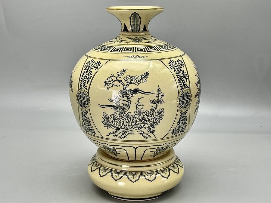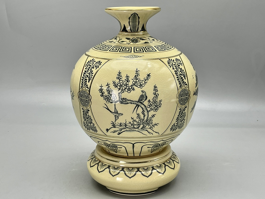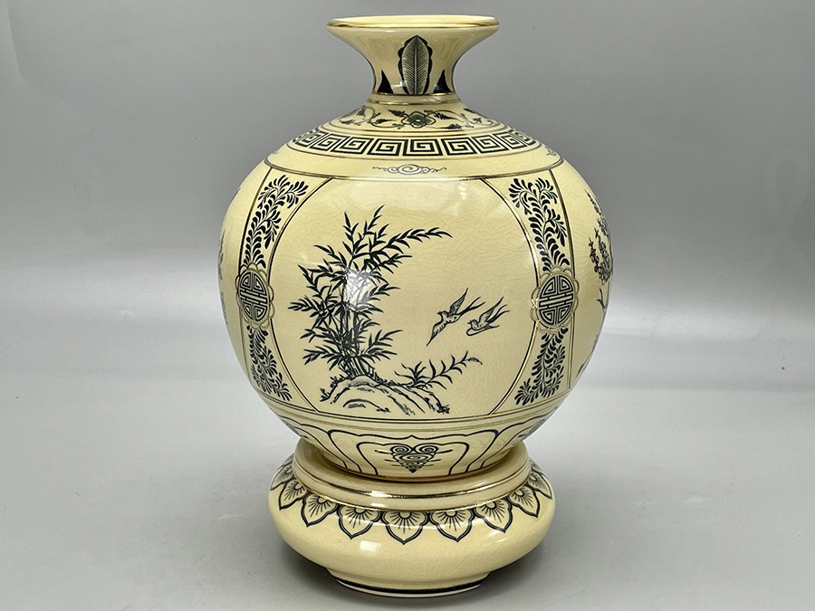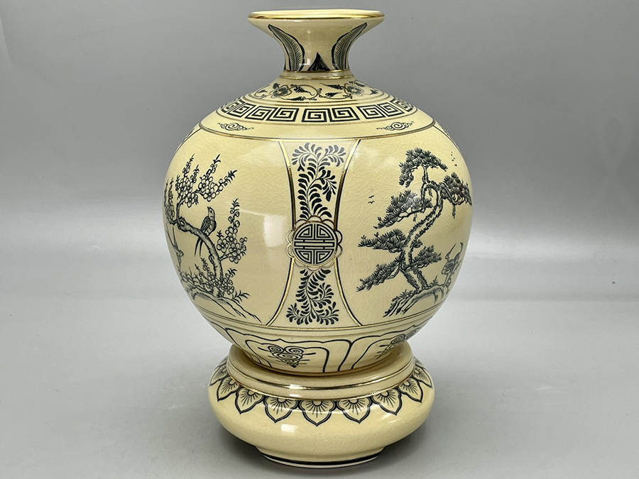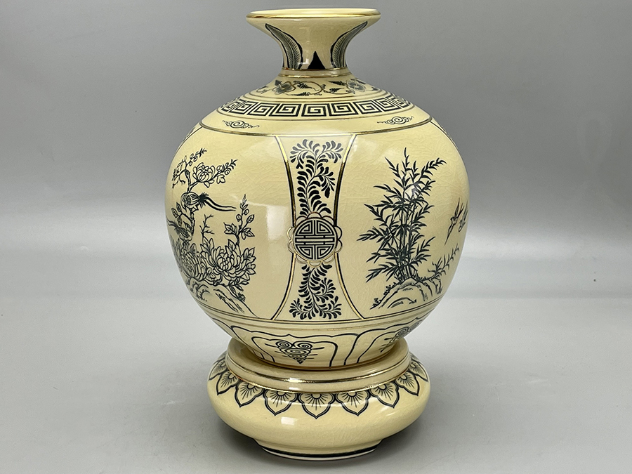 Bình Hút Lộc Tứ Cảnh H25 Gốm Chu Đậu Kẻ Vàng