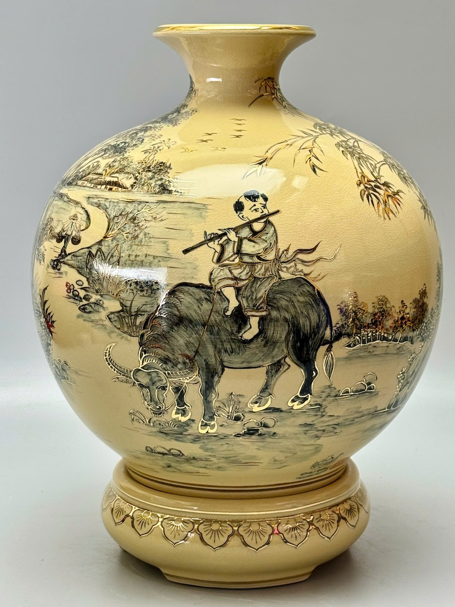 Bình Hút Tài Lộc Cao 42cm Hoạ Tiết Đồng Quê - Chăn Trâu Thổi Sáo Vẽ Vàng
