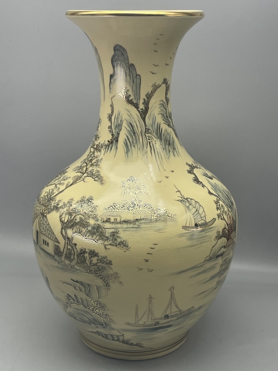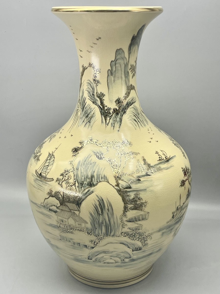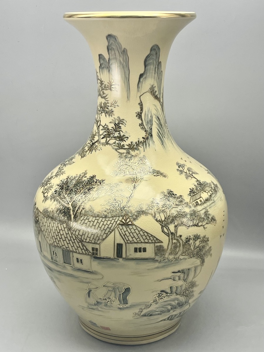 Bình Phú Quý Cảnh Đồng Quê H65 Gốm Chu Đậu Vẽ Vàng 24K RG-000571