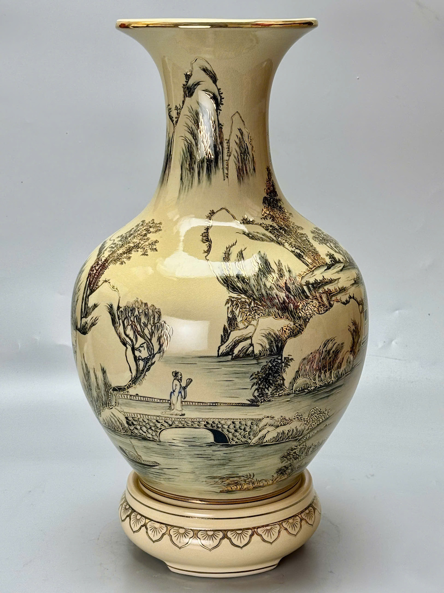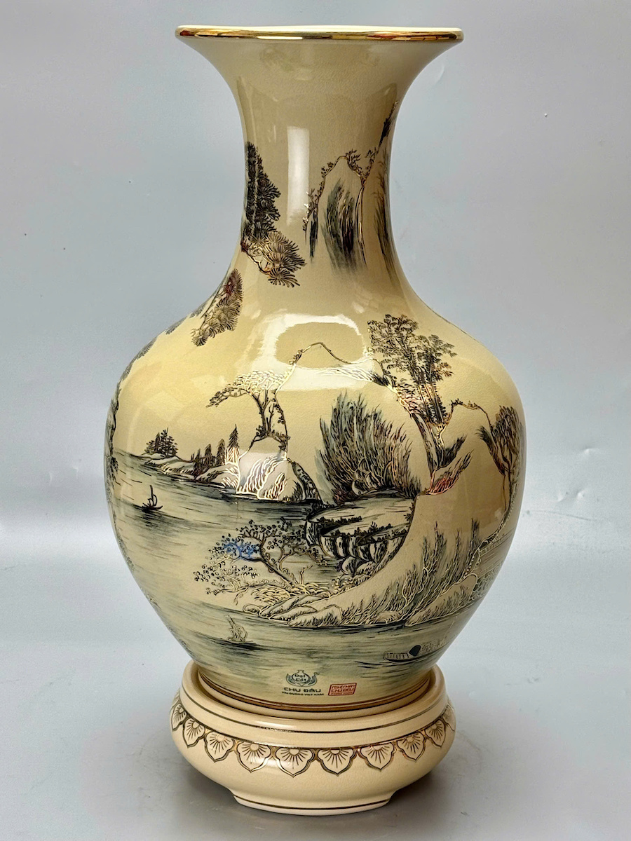 Bình Phú Quý Non Nước Hữu Tình Cao 58cm Gốm Chu Đậu Vẽ Vàng