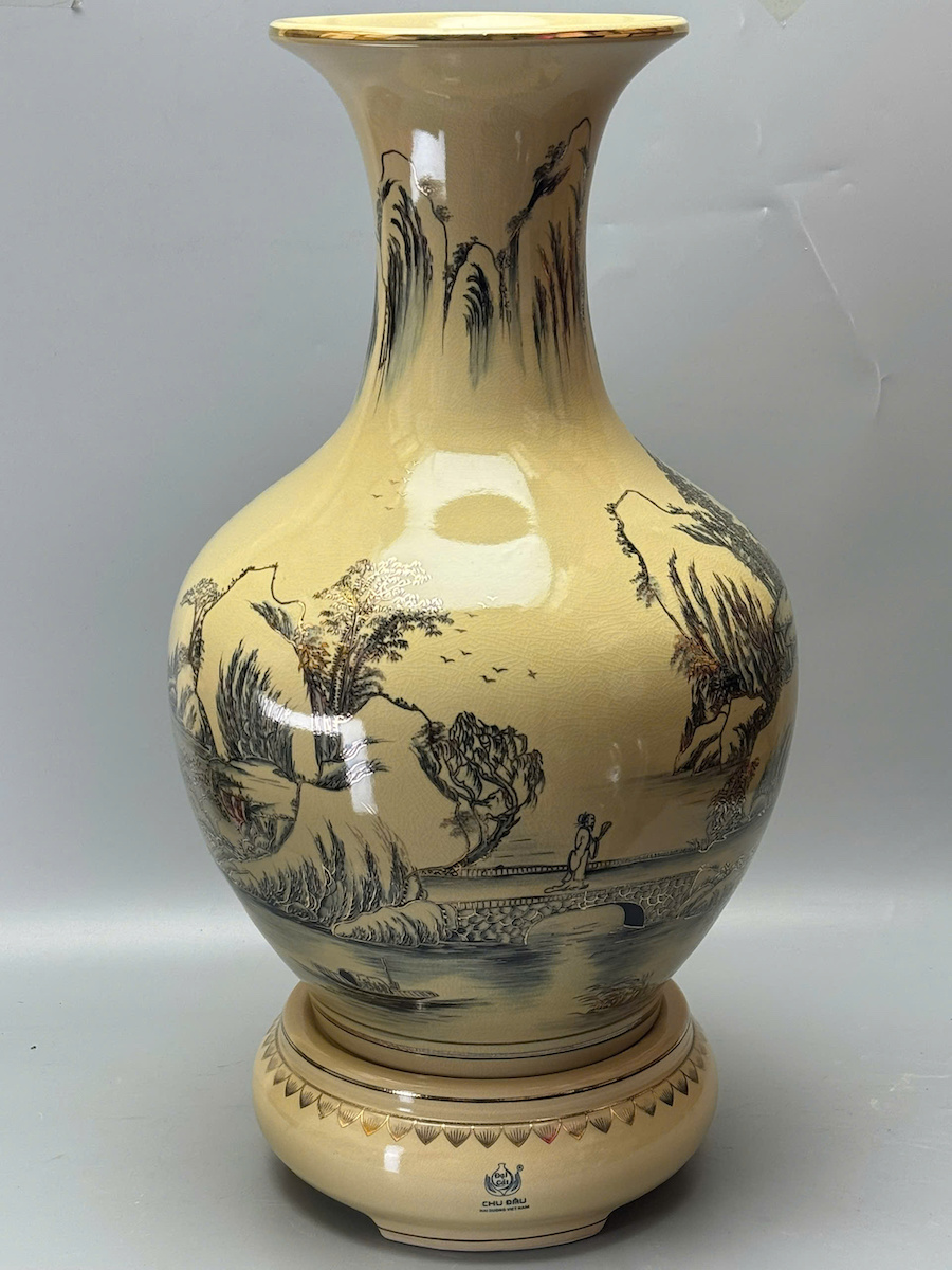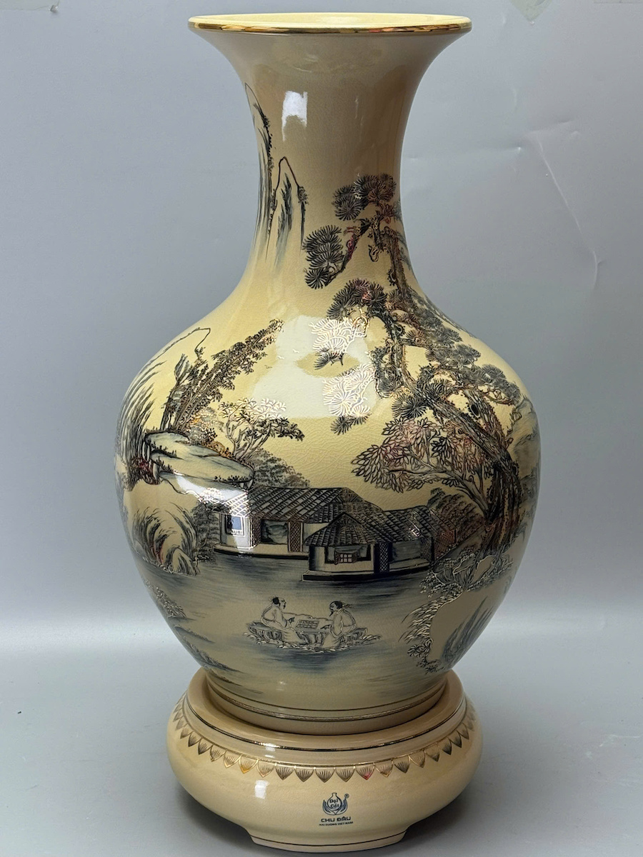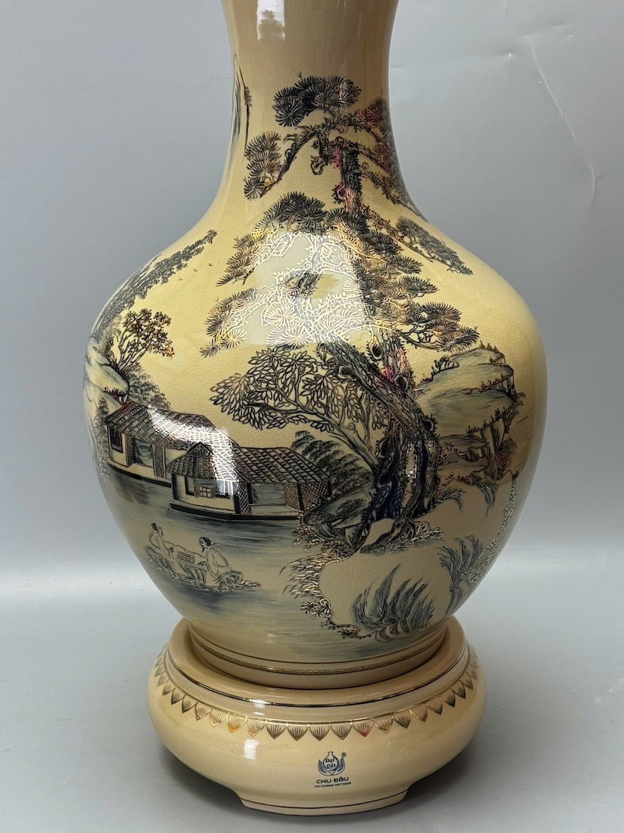 Bình Phú Quý Sơn Thuỷ Hữu Tình Cao 75cm Gốm Chu Đậu Vẽ Vàng