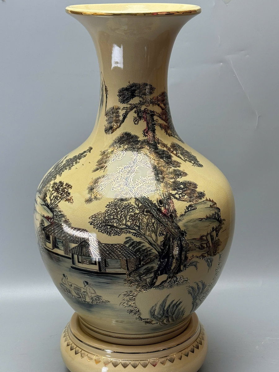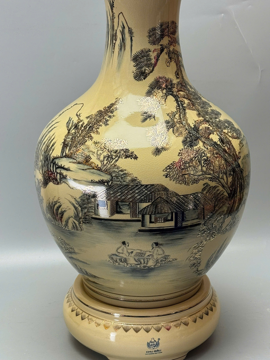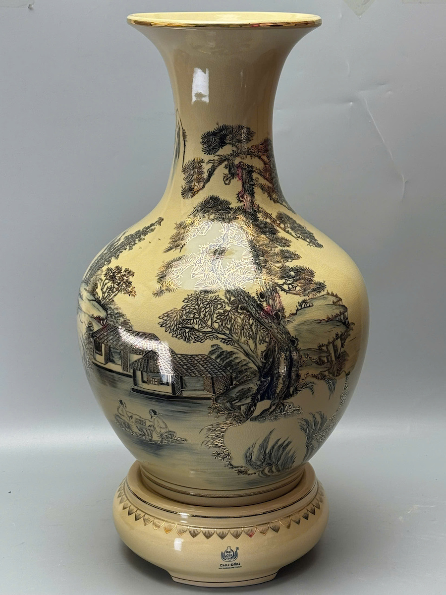 Bình Phú Quý Sơn Thuỷ Hữu Tình Cao 75cm Gốm Chu Đậu Vẽ Vàng