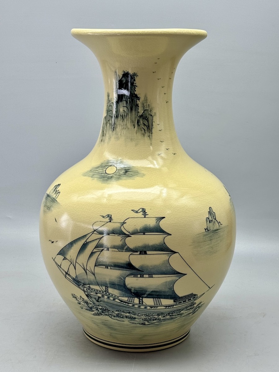 Bình Phú Quý Thuận Buồm Xuôi Gió H50 Gốm Chu Đậu Truyền Thống