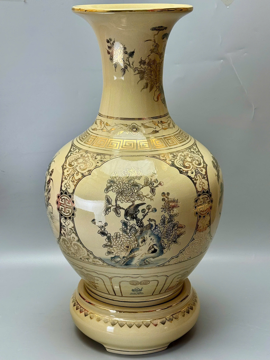 Bình Phú Quý Tứ Cảnh Cổ Điển Cao 75cm Gốm Chu Đậu Vẽ Vàng