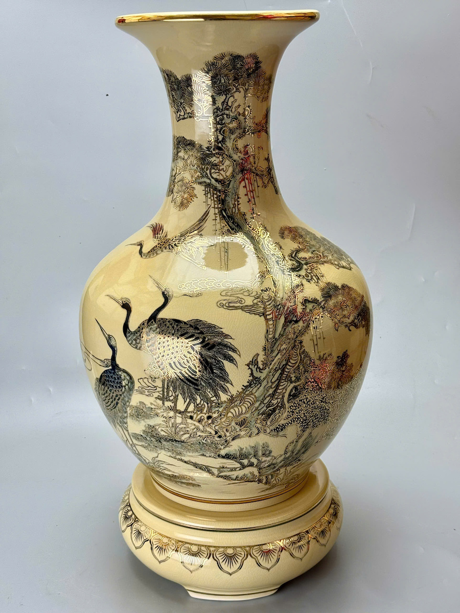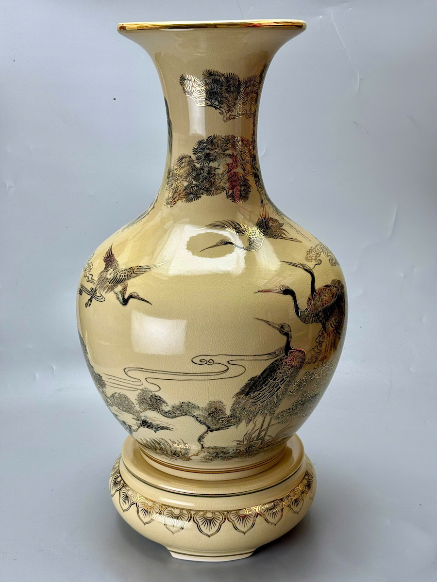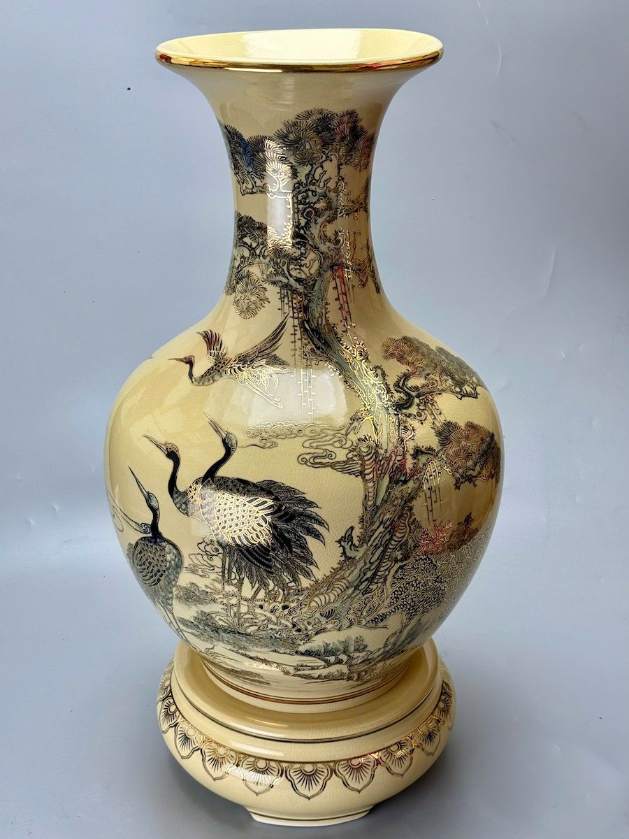 Bình Phú Quý Tùng Hạc Diên Niên Cao 99cm Gốm Chu Đậu Vẽ Vàng