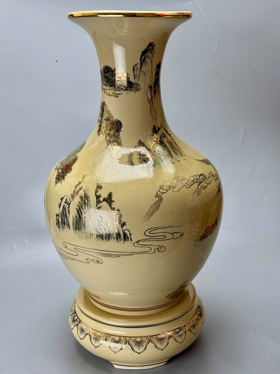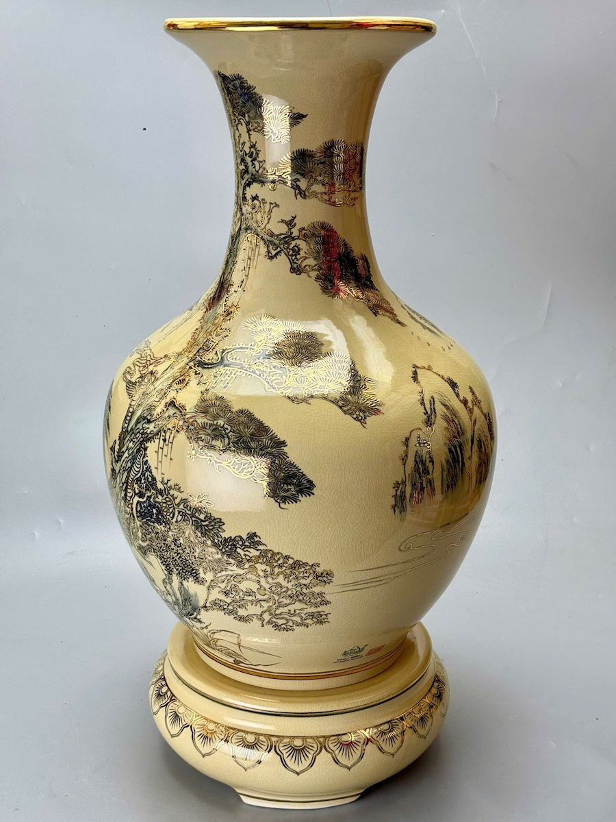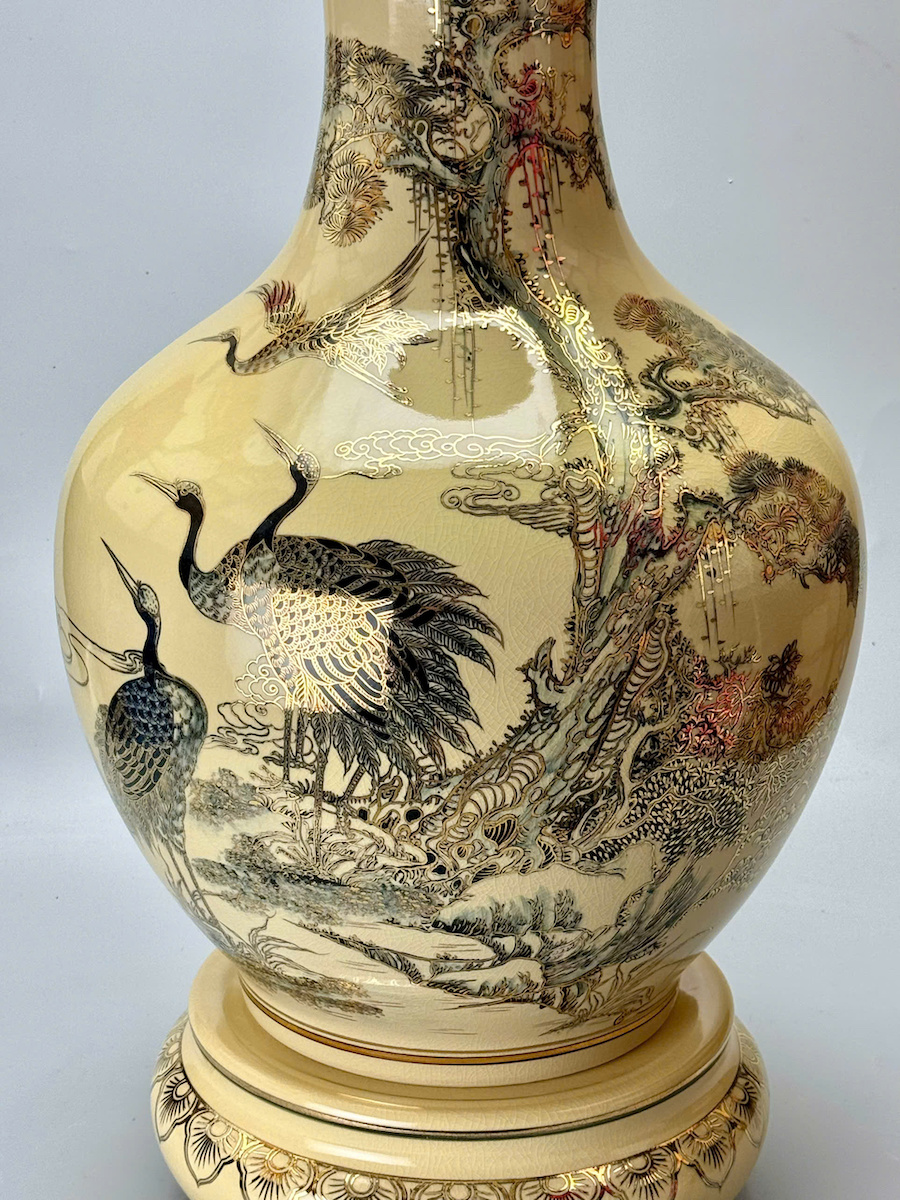 Bình Phú Quý Tùng Hạc Diên Niên Cao 99cm Gốm Chu Đậu Vẽ Vàng