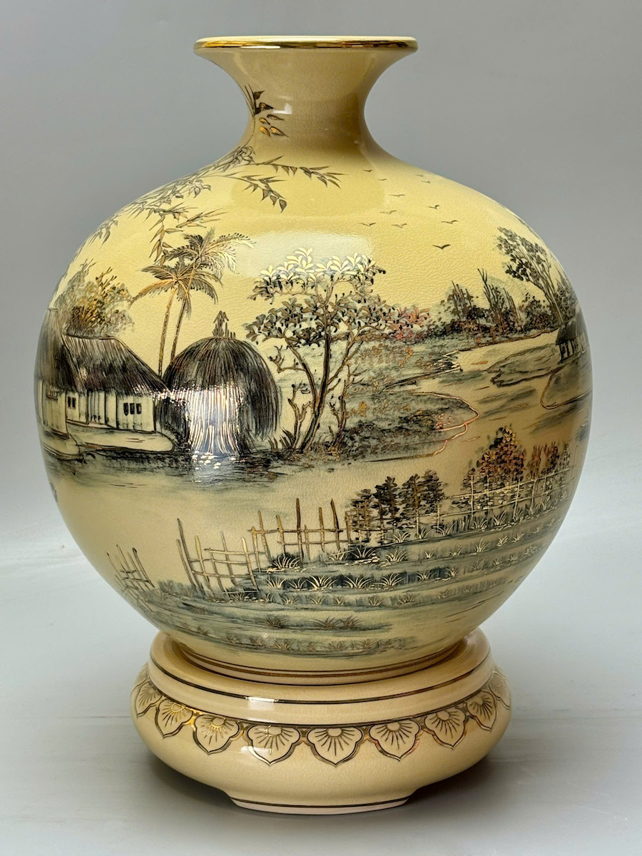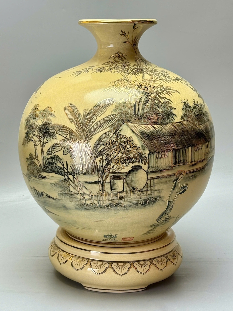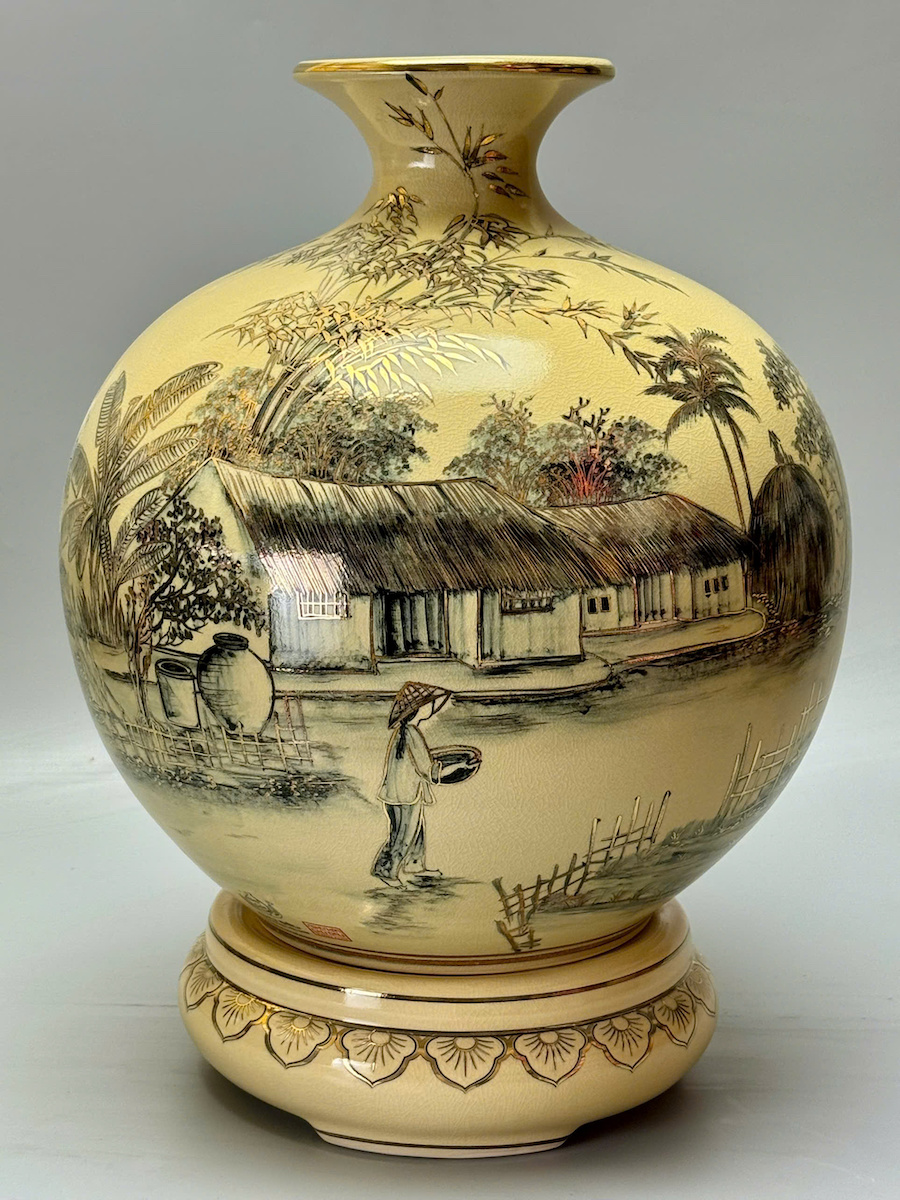 Bình Tài Lộc Hoạ Tiết Làng Quê Việt Nam Cao 50cm Gốm Vẽ Vàng
