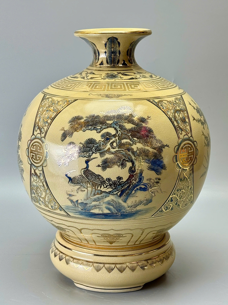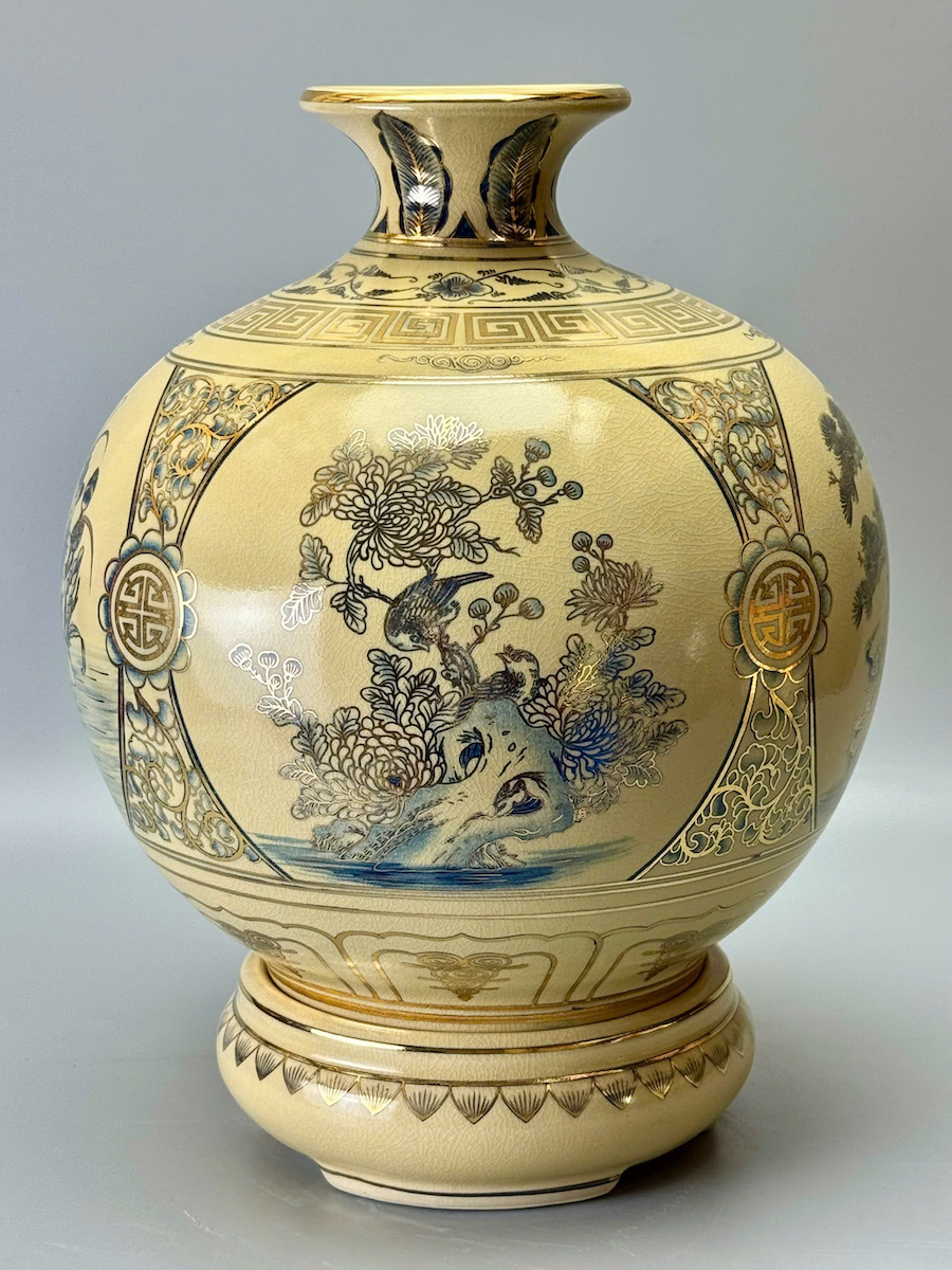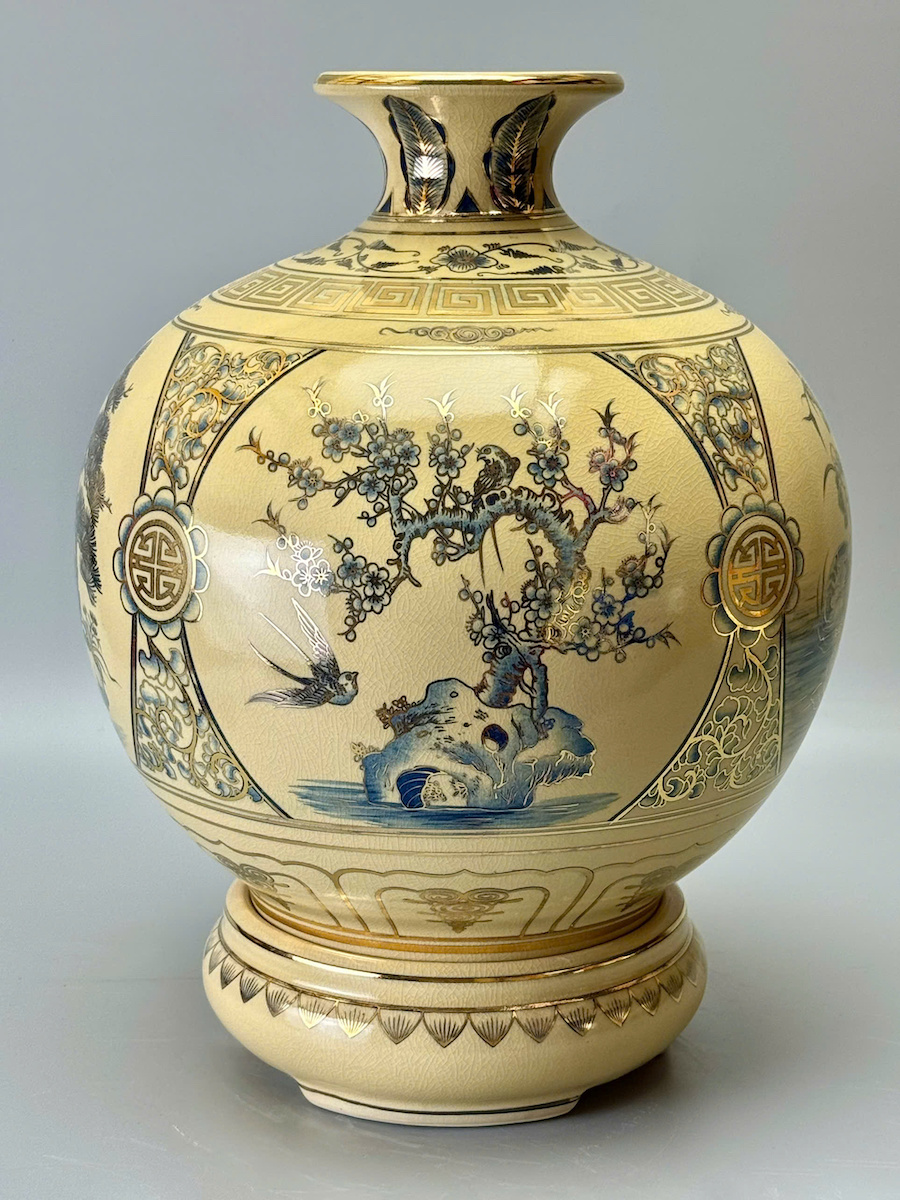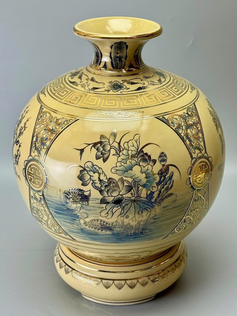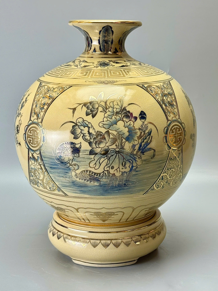 Bình Tài Lộc Tứ Cảnh Bốn Mùa Cao 42cm Xanh Coban Gốm Men Rạn Vẽ Vàng