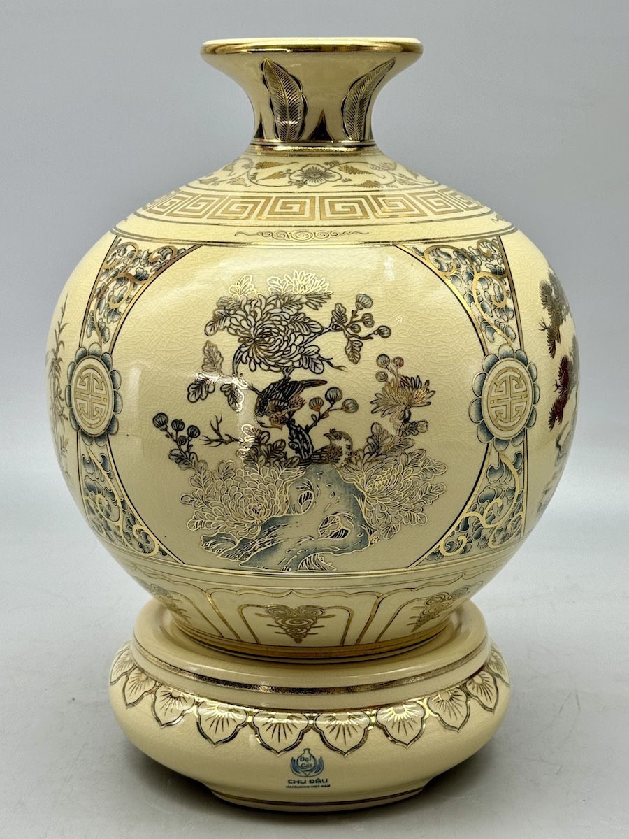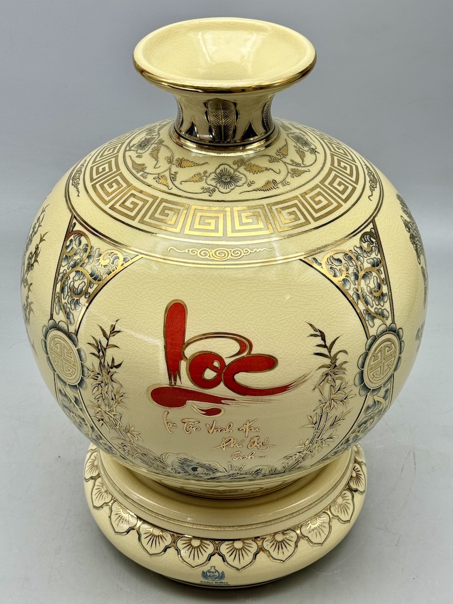 Bình Tích Lộc Tứ Cảnh Chữ Lộc H30 Gốm Chu Đậu Hải Dương Vẽ Vàng Kim
