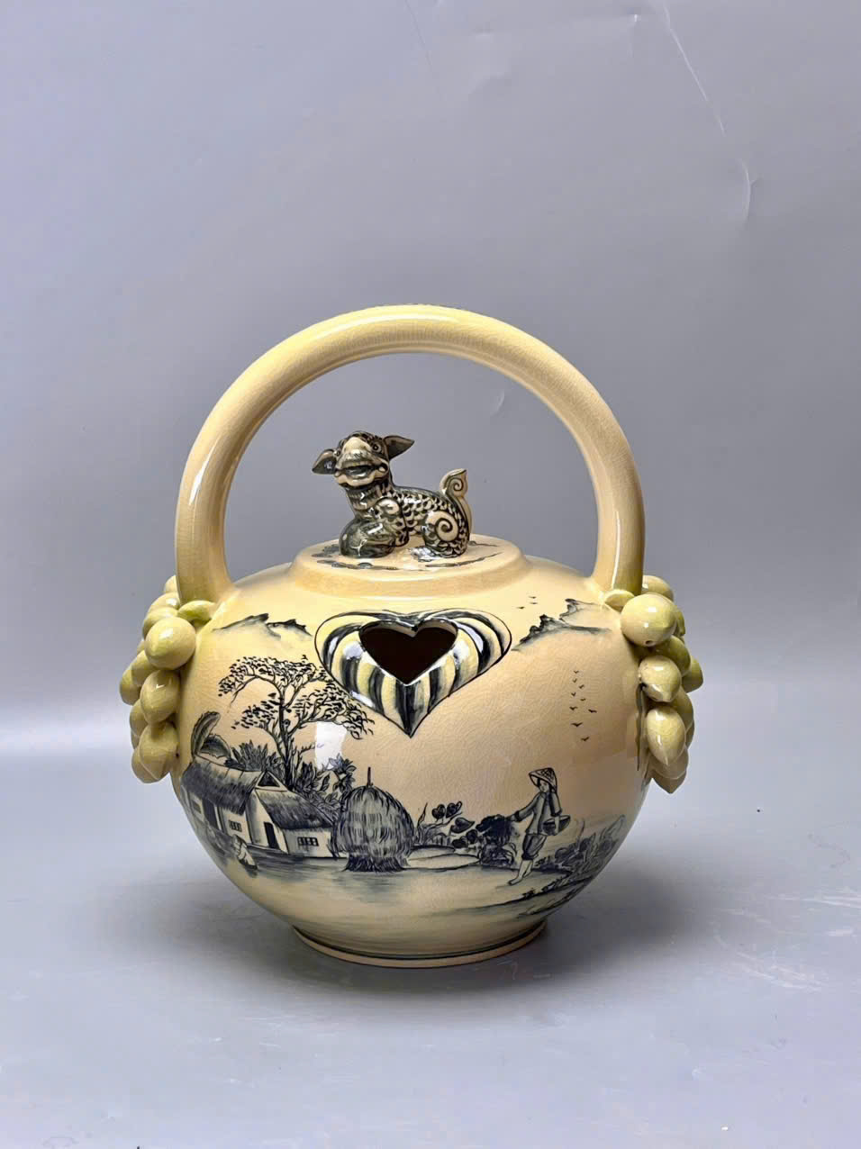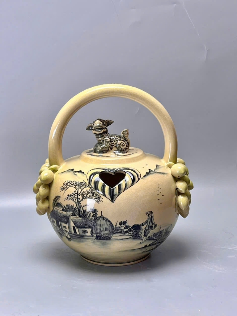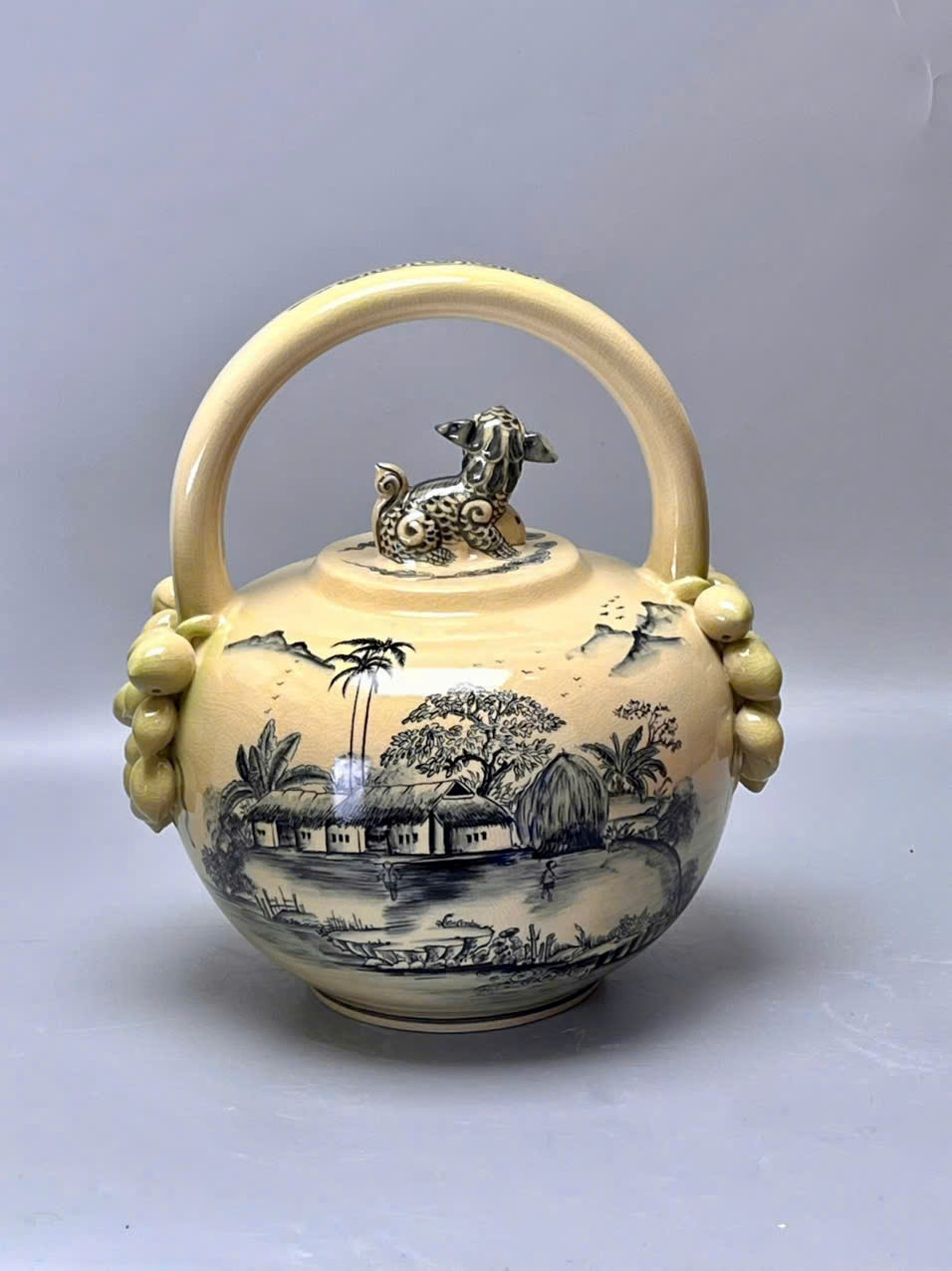 Bình Vôi Cao 44cm Hoạ Tiết Làng Quê Việt Nam Gốm Chu Đậu Truyền Thống