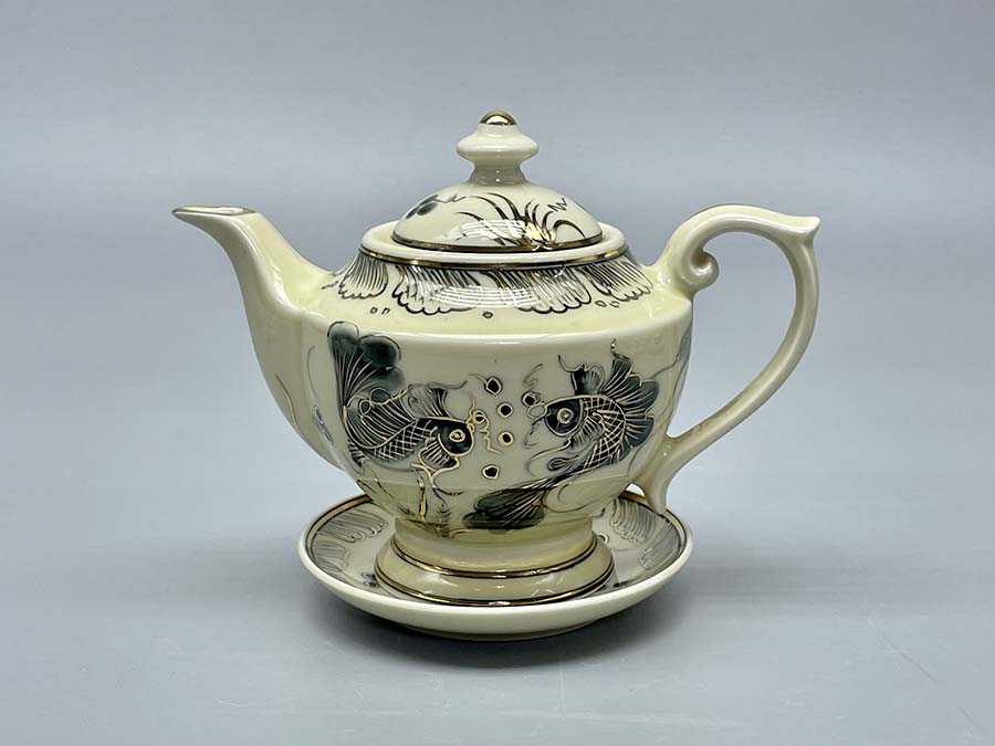 Bộ Ấm Trà Cá Chép Gốm Chu Đậu Vẽ Vàng 24K RG-000606