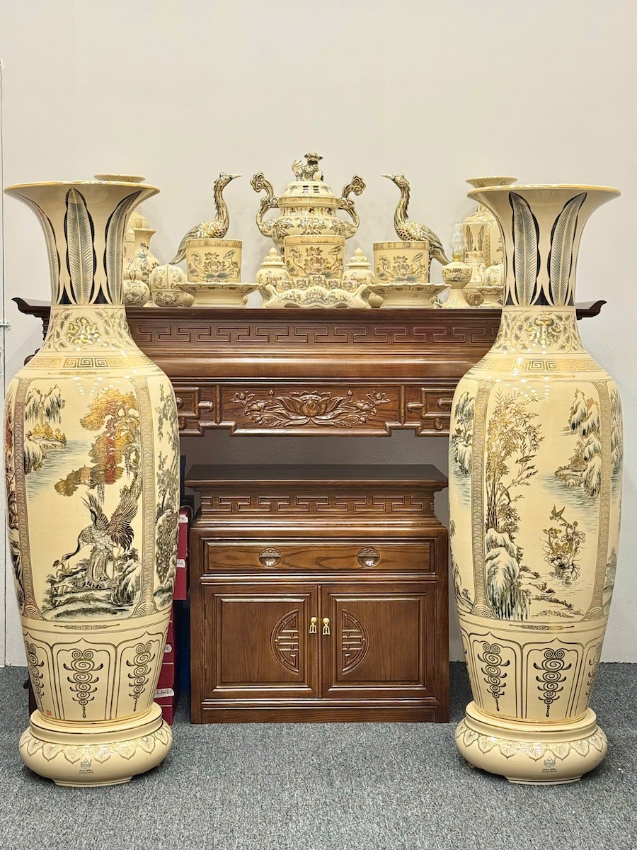 • 🌲 Đặc biệt: Cặp lục bình Tùng Hạc Diên Niên cao 1,55m – biểu tượng cho phúc lộc, thọ khang ninh, giúp chiêu tài – giữ phúc – bình an cho gia đạo.