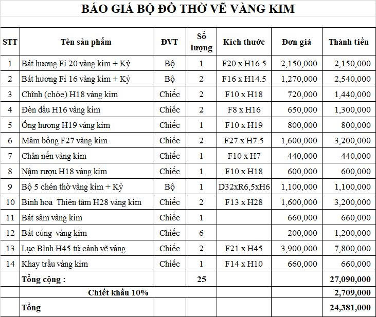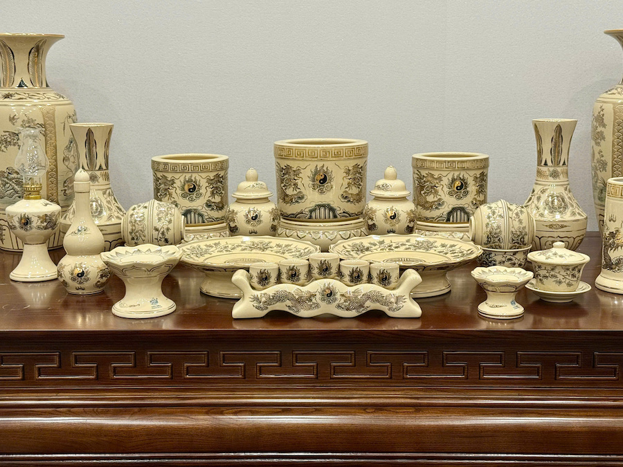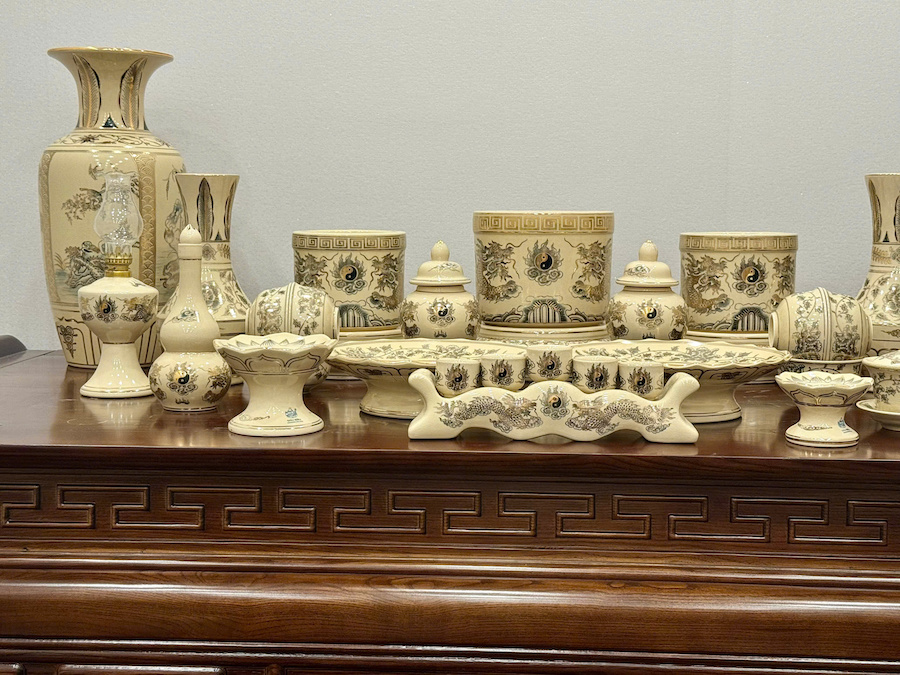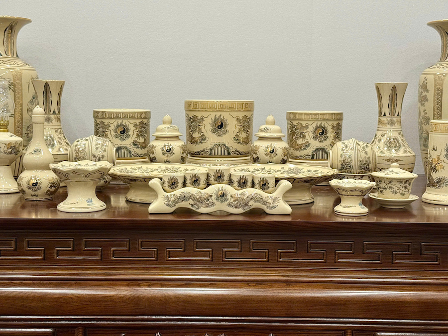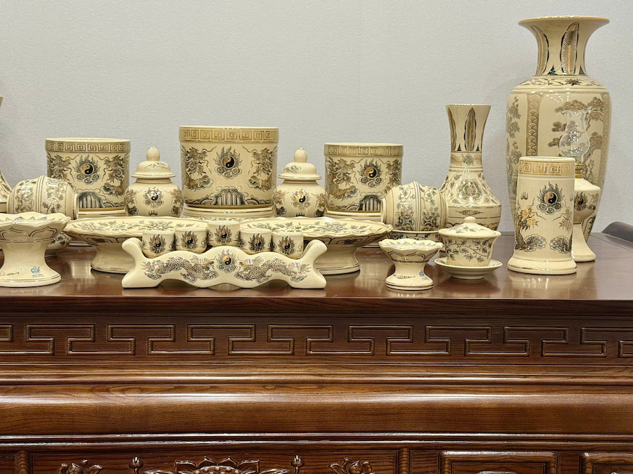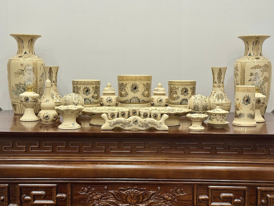 Bộ Đồ Thờ Cho Ban Thờ 1,55 Gốm Vẽ Vàng