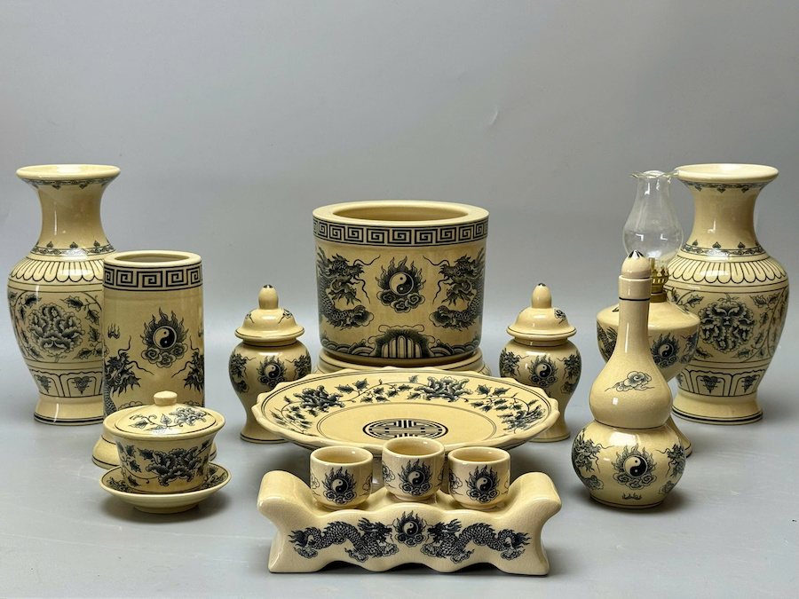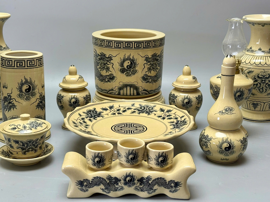 Bộ Đồ Thờ Cho Ban Thờ Từ 1,07m Đến 1,27m Gốm Chu Đậu Truyền Thống