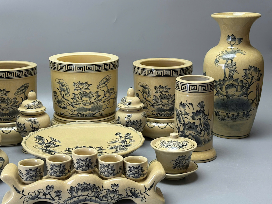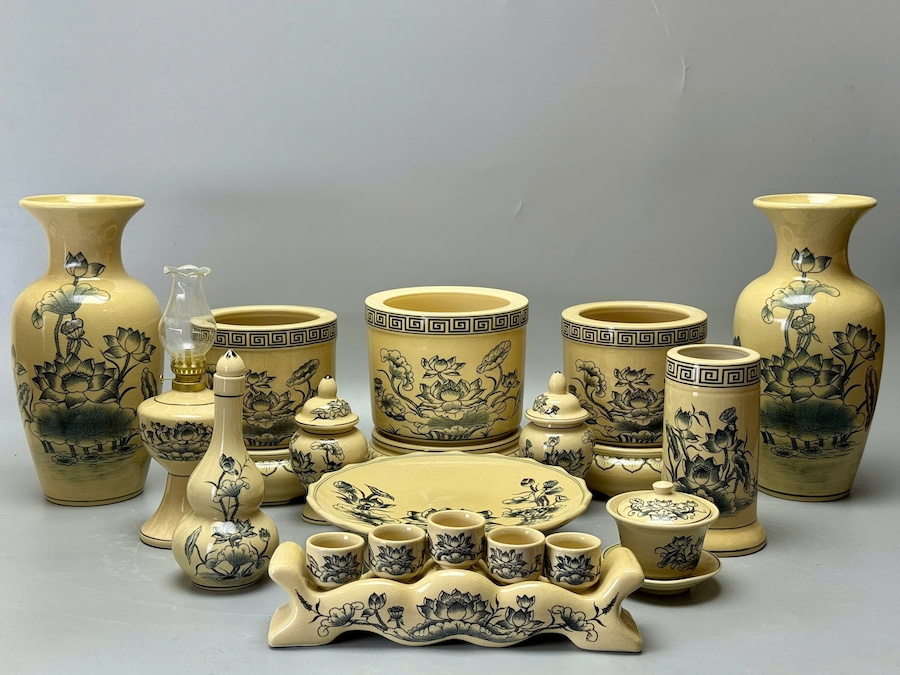 Bộ Đồ Thờ Hoạ Tiết Hoa Sen Cho Ban Thờ 1,75m Gốm Chu Đậu Truyền Thống