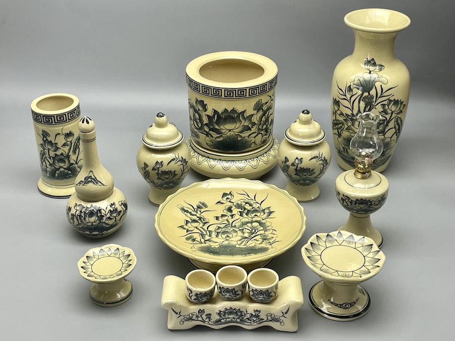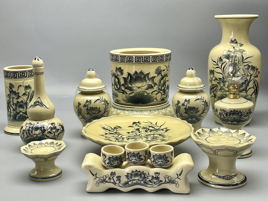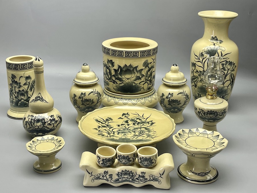 Bộ Đồ Thờ Hoạ Tiết Hoa Sen Gốm Chu Đậu Truyền Thống