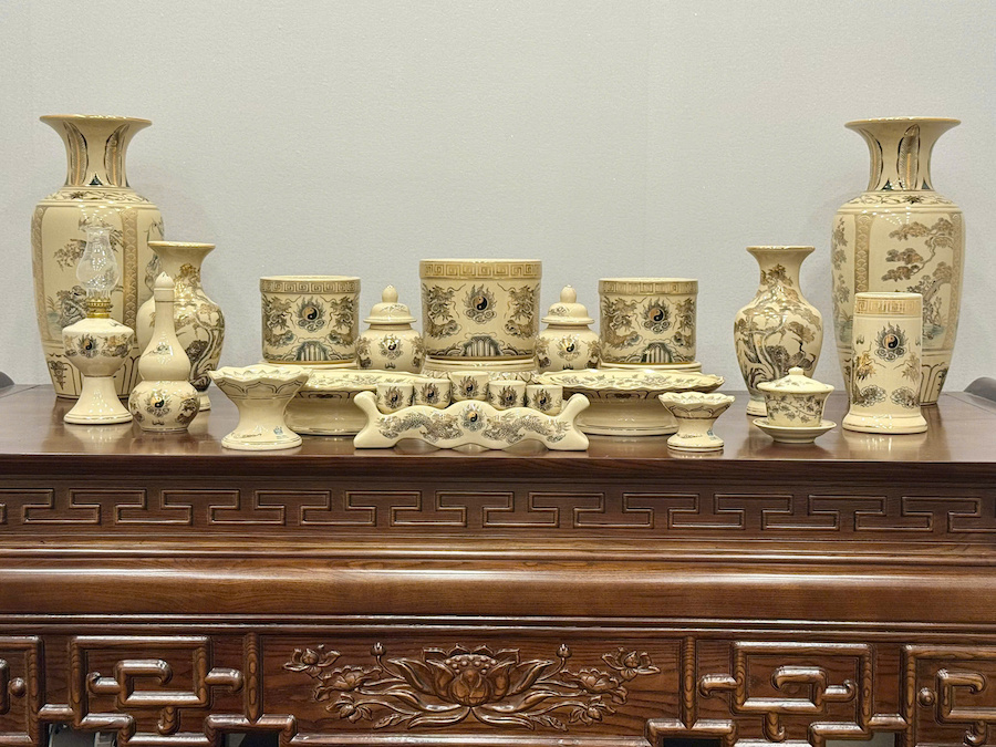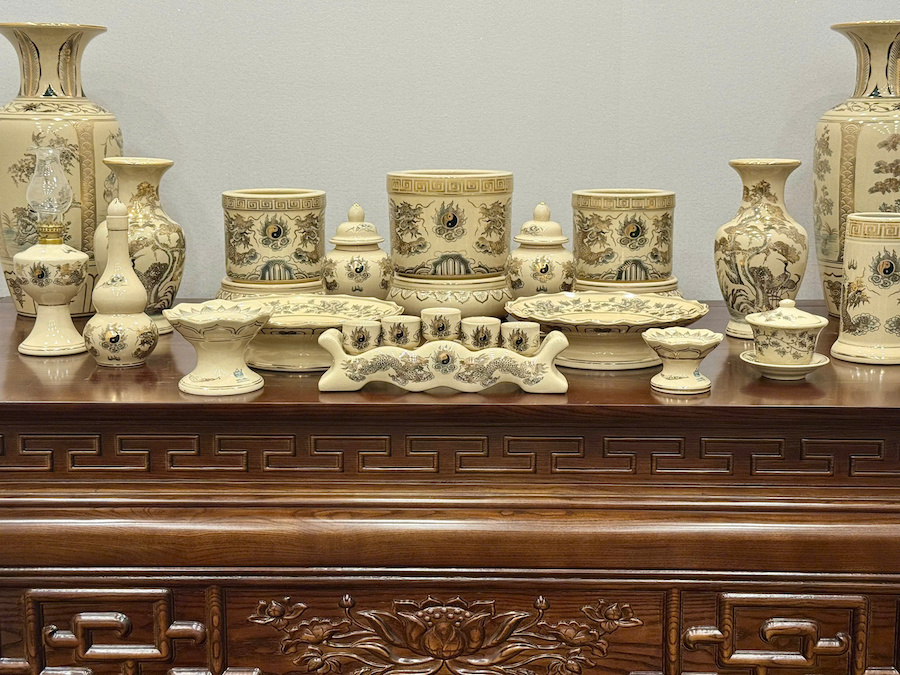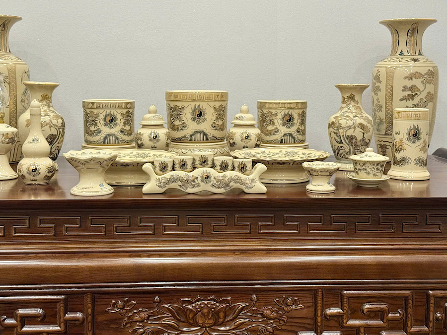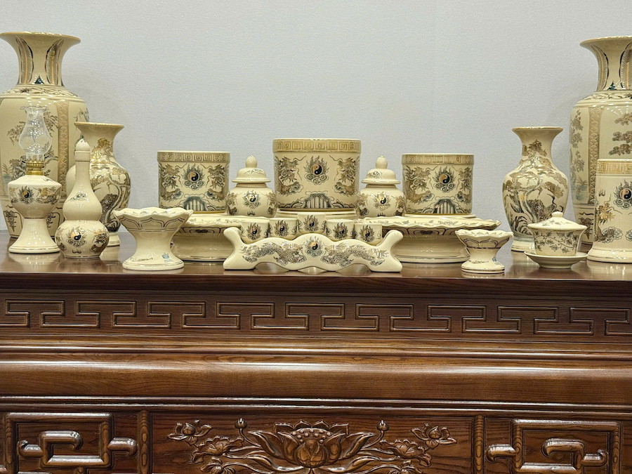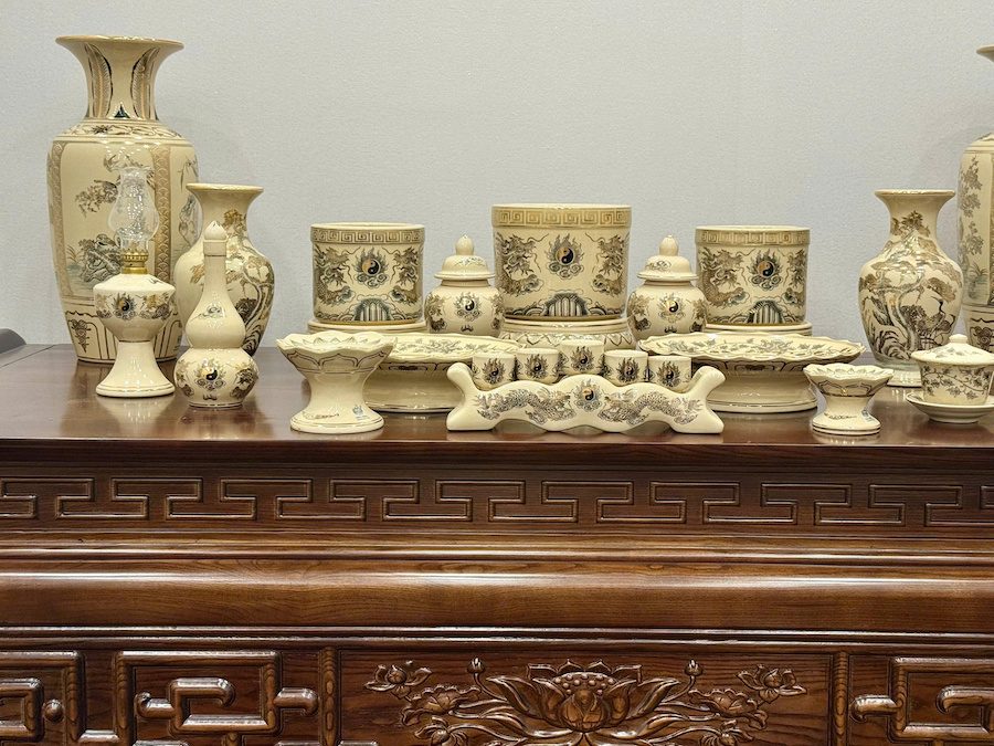 Bộ Đồ Thờ Hoạ Tiết Rồng Ban Thờ 1,57m Gốm Vẽ Vàng