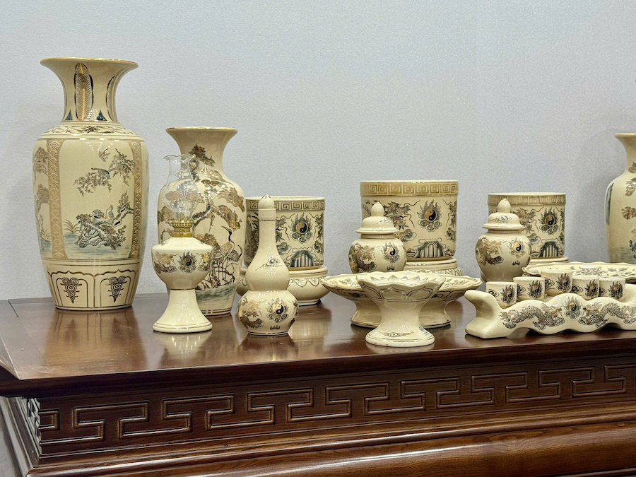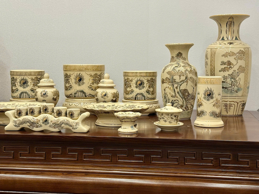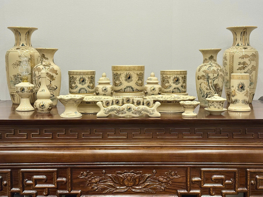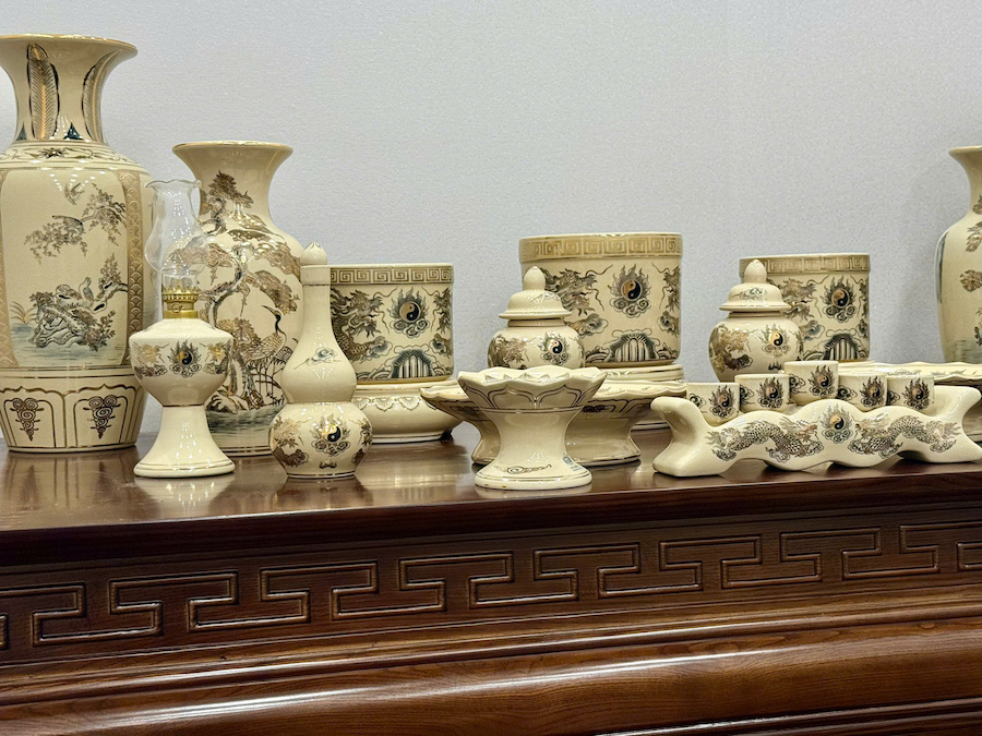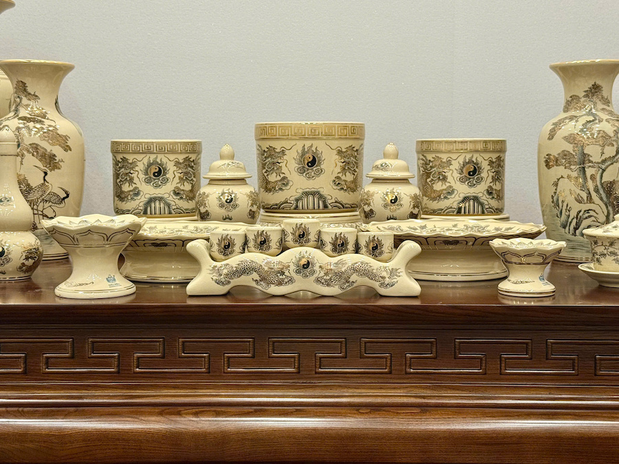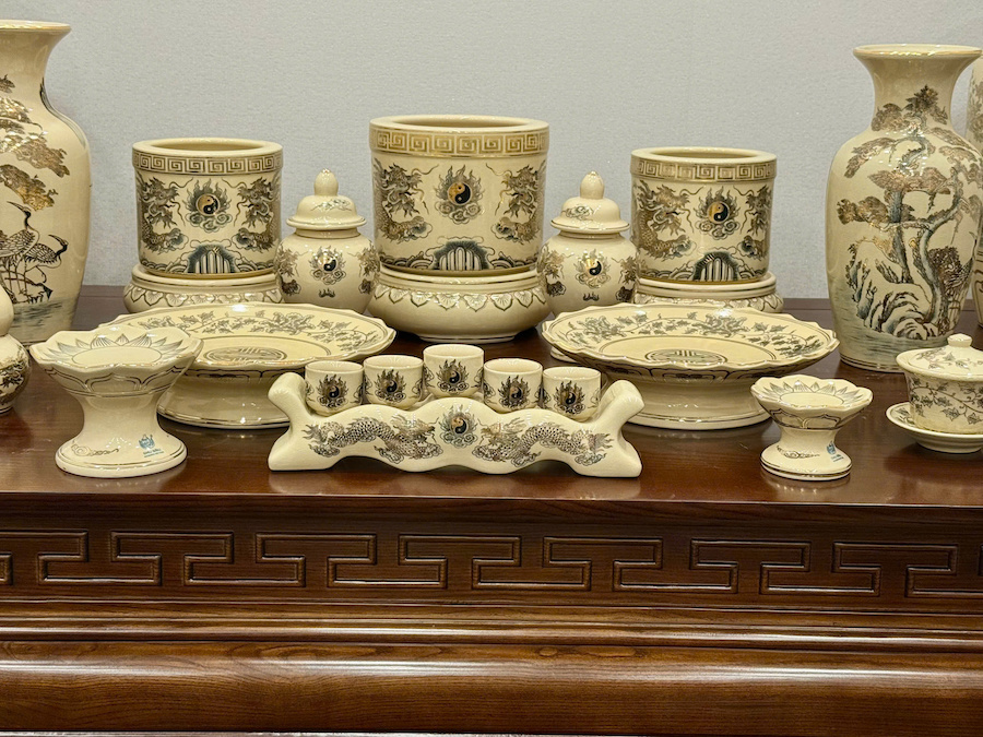 Bộ Đồ Thờ Hoạ Tiết Rồng Ban Thờ 1,75m Gốm Vẽ Vàng