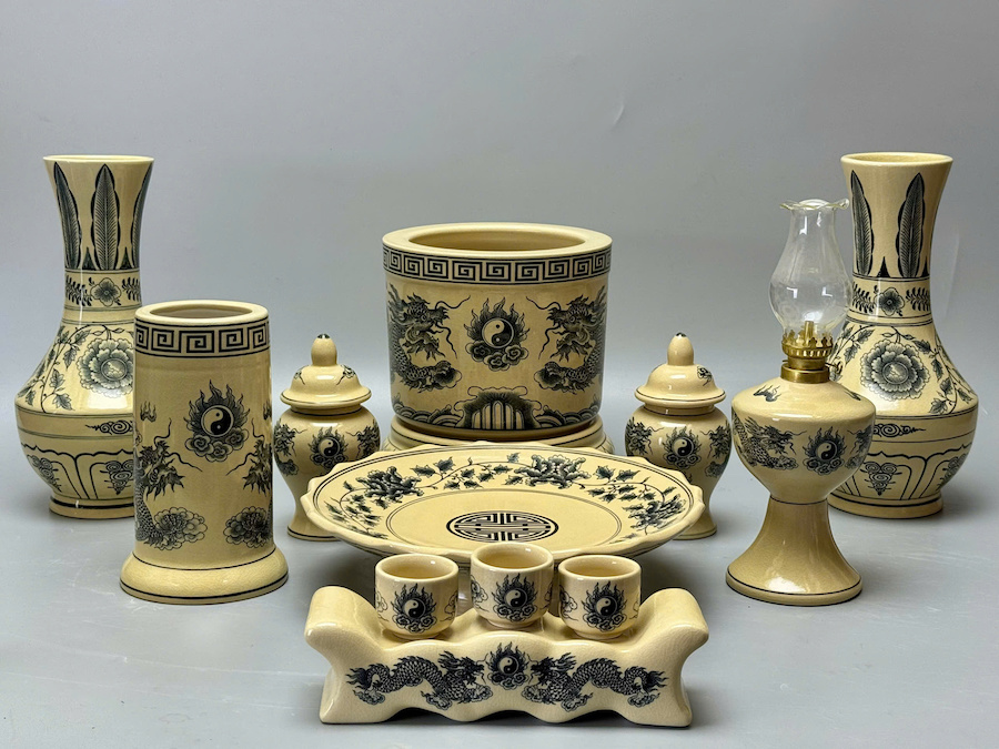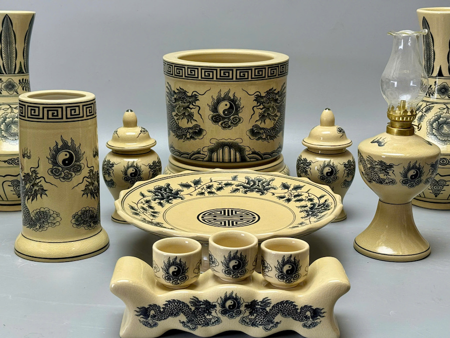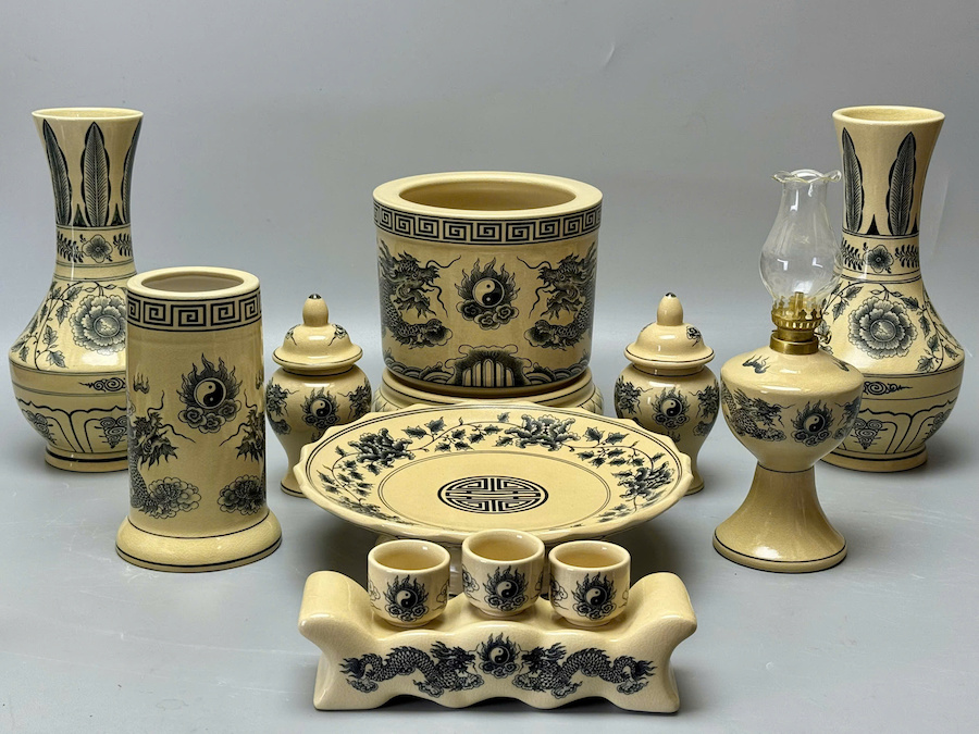Bộ Đồ Thờ Hoạ Tiết Rồng Cho Ban Thờ 1,27m Đến 1,53m Gốm Chu Đậu Truyền Thống