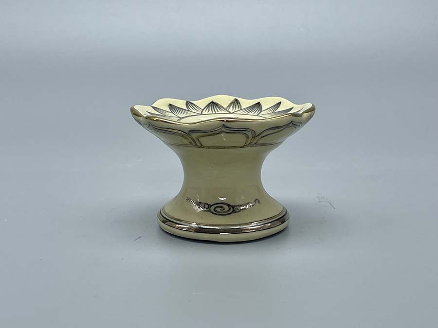 Chân Nến Gốm Chu Đậu Vẽ Vàng Kim