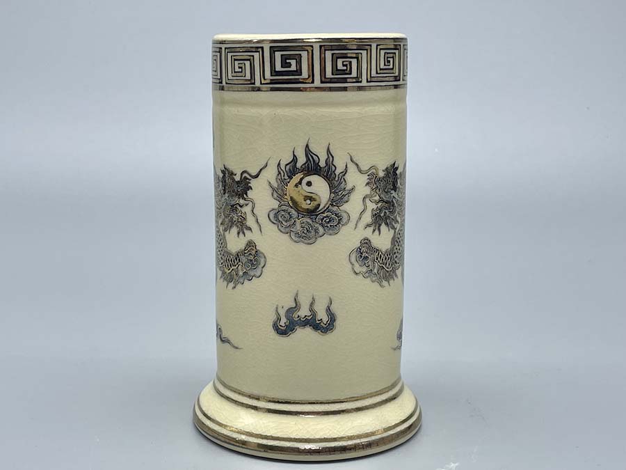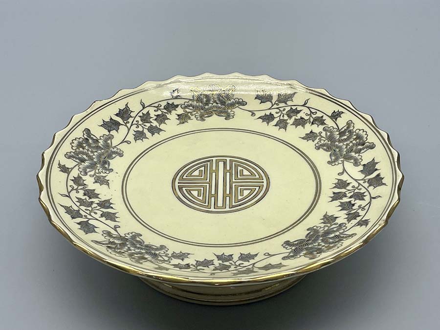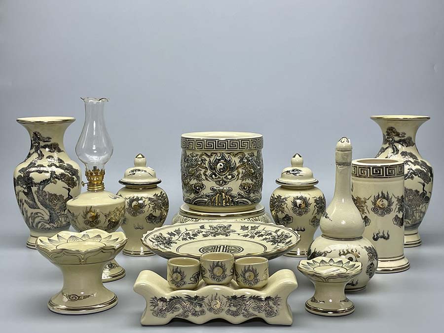 Đồ thờ Gốm Chu Đậu Vẽ Vàng Kim RG-0007591 với vẻ đẹp thanh cao, trong sáng được nghệ nhân gốm Chu Đậu phỏng theo thiết kế thời gốm Chu Đậu triều Trần – Lê Sơ (Thế kỷ thứ XIV – XV). Được vẽ thủ công dưới men ngà được chiết xuất từ vỏ trấu kết hợp với thủ pháp vẽ vàng kim, là sự giao thoa hài hòa giữa quá khứ và hiện tại.