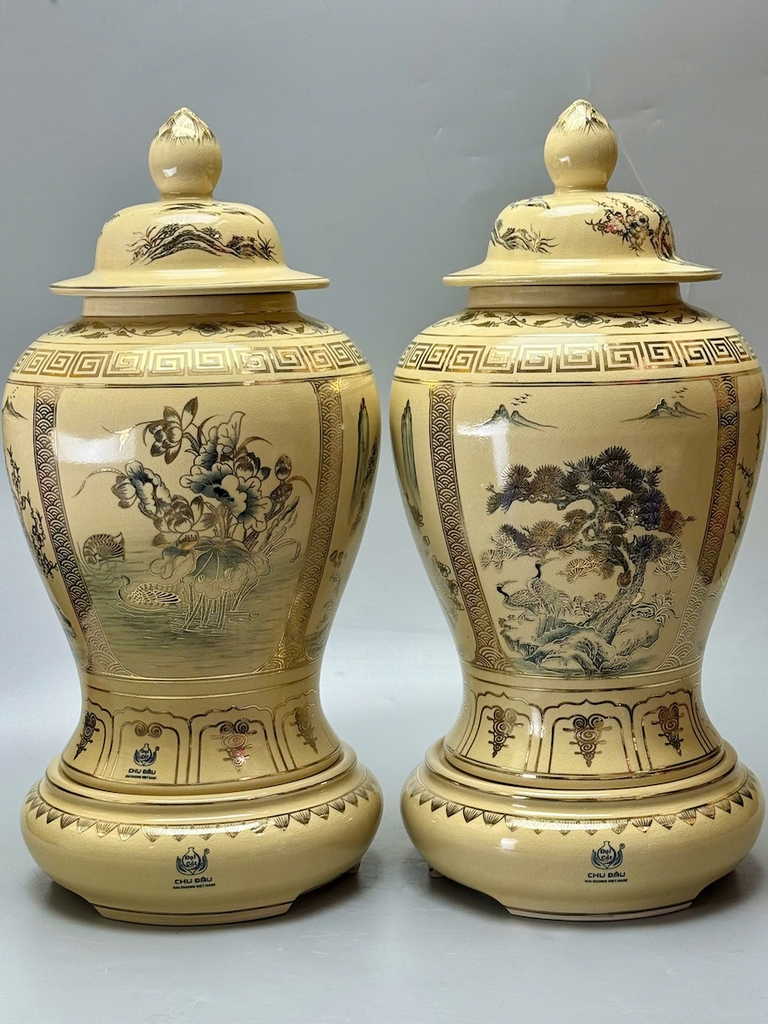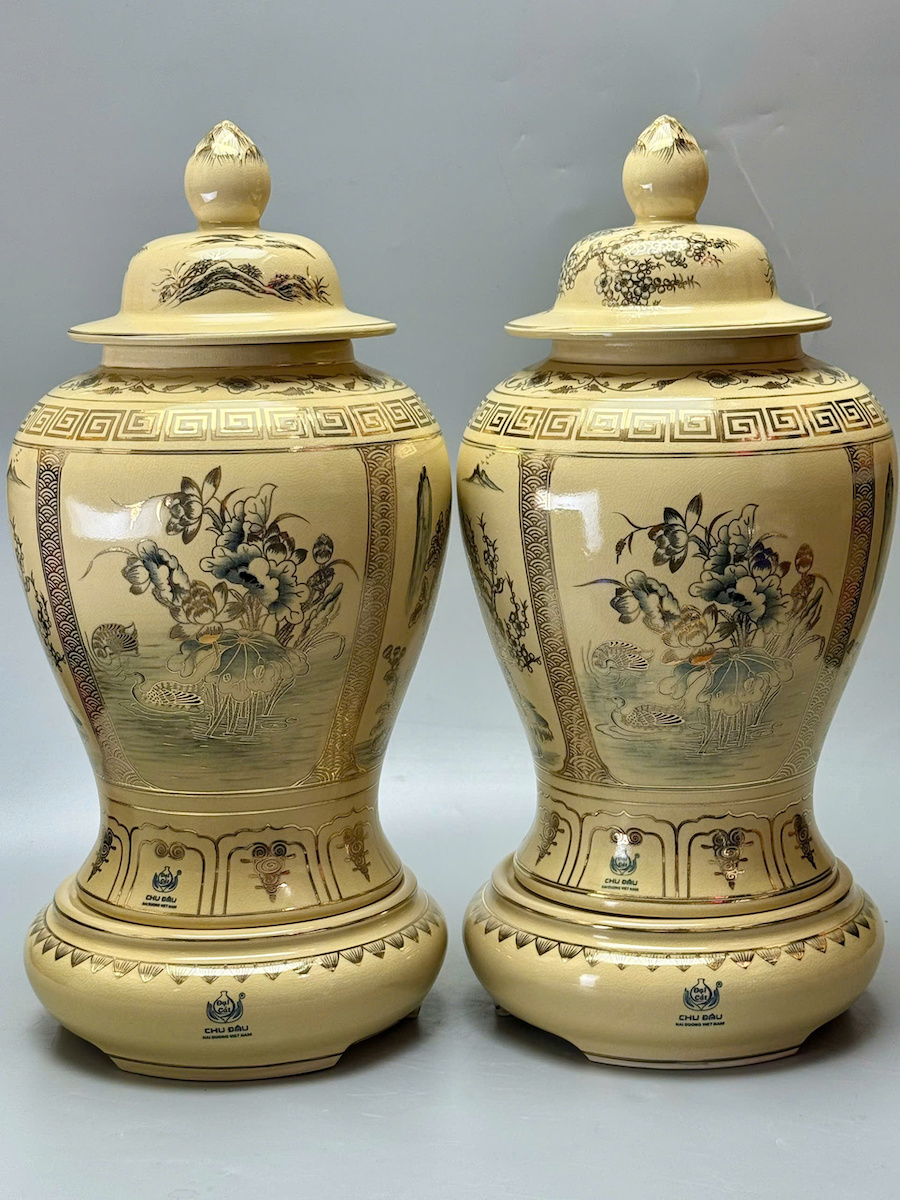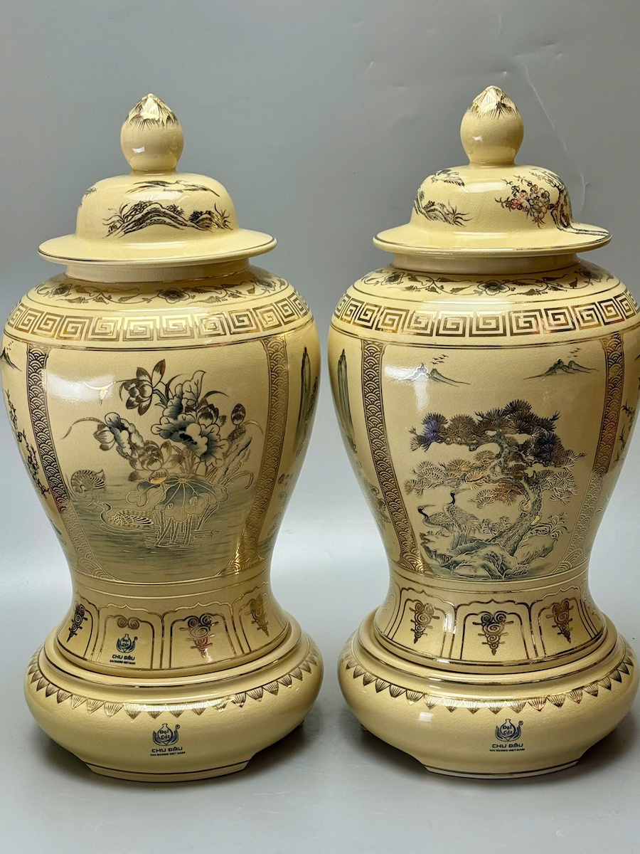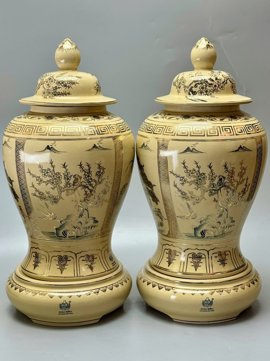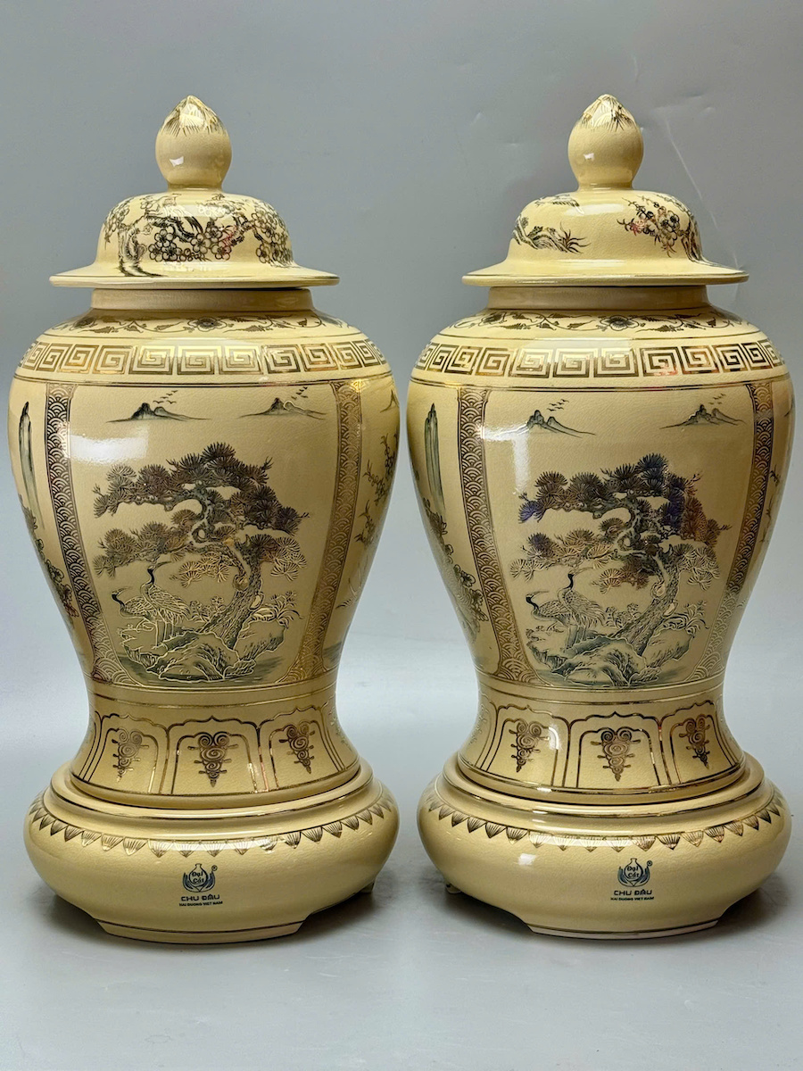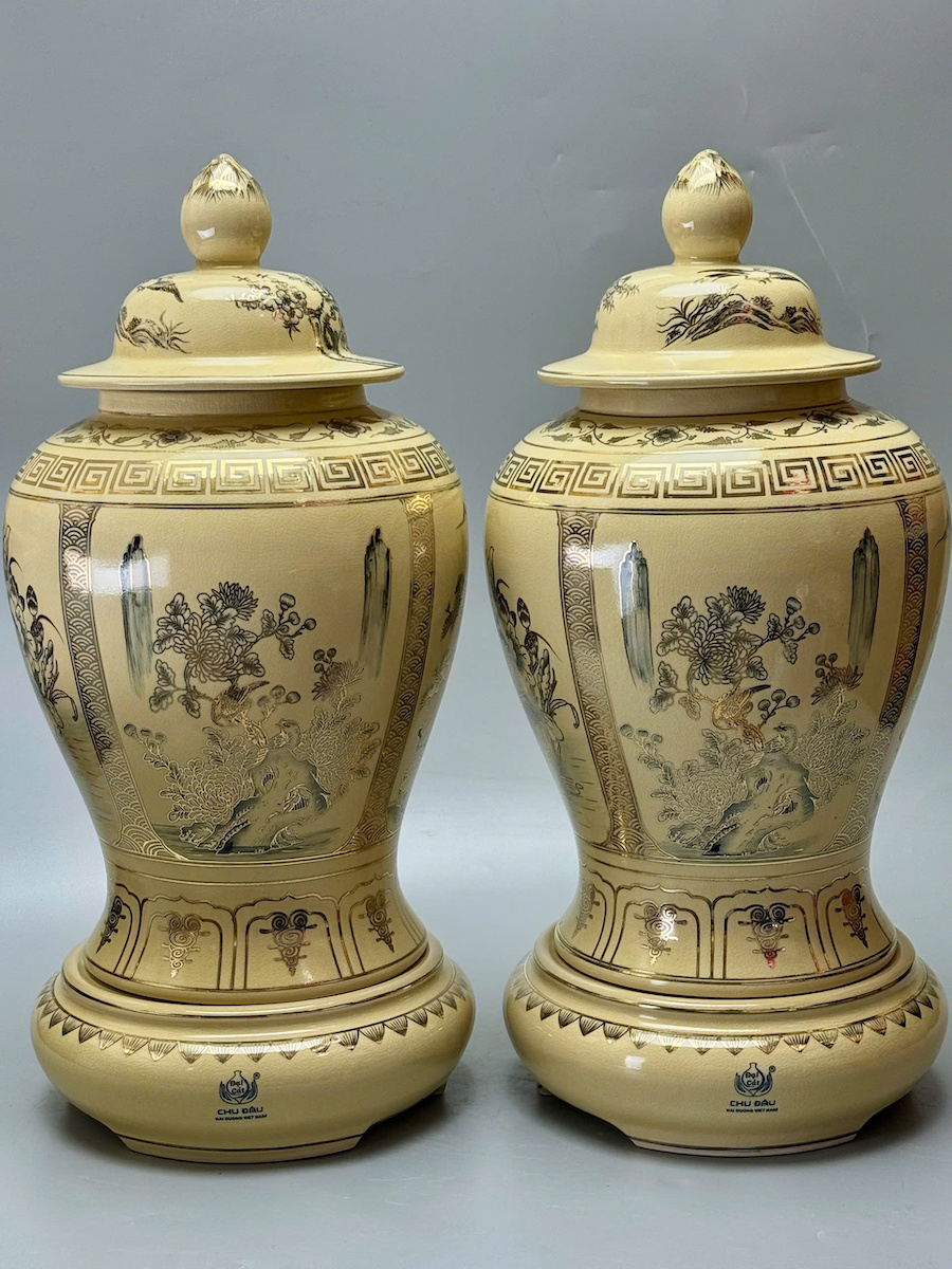 Đôi Choé Cao 65cm Hoạ Tiết Tứ Cảnh Bốn Mùa Gốm Chu Đậu Vẽ Vàng