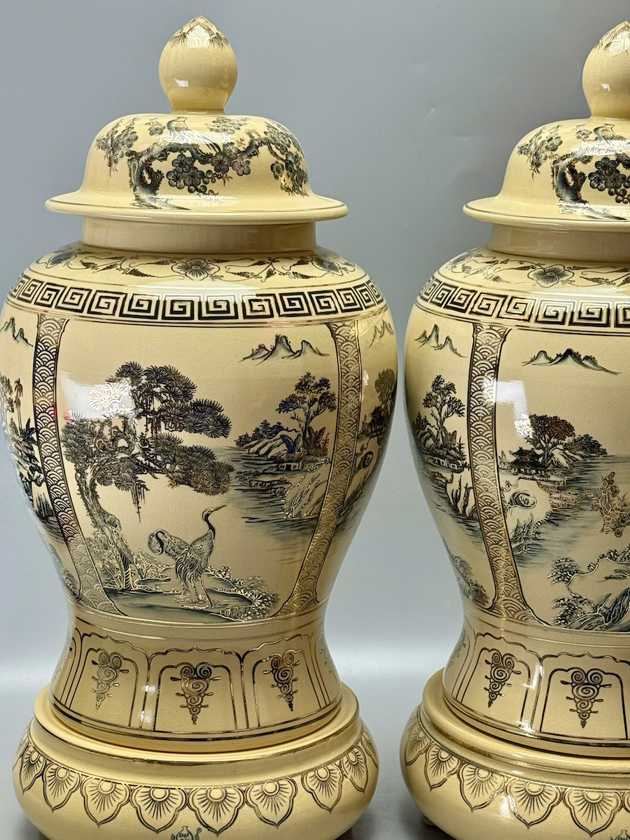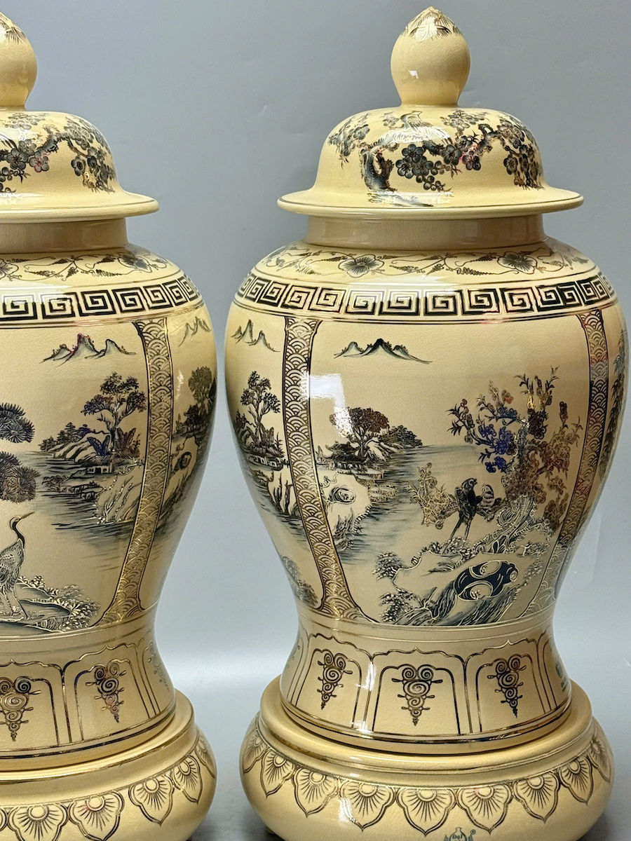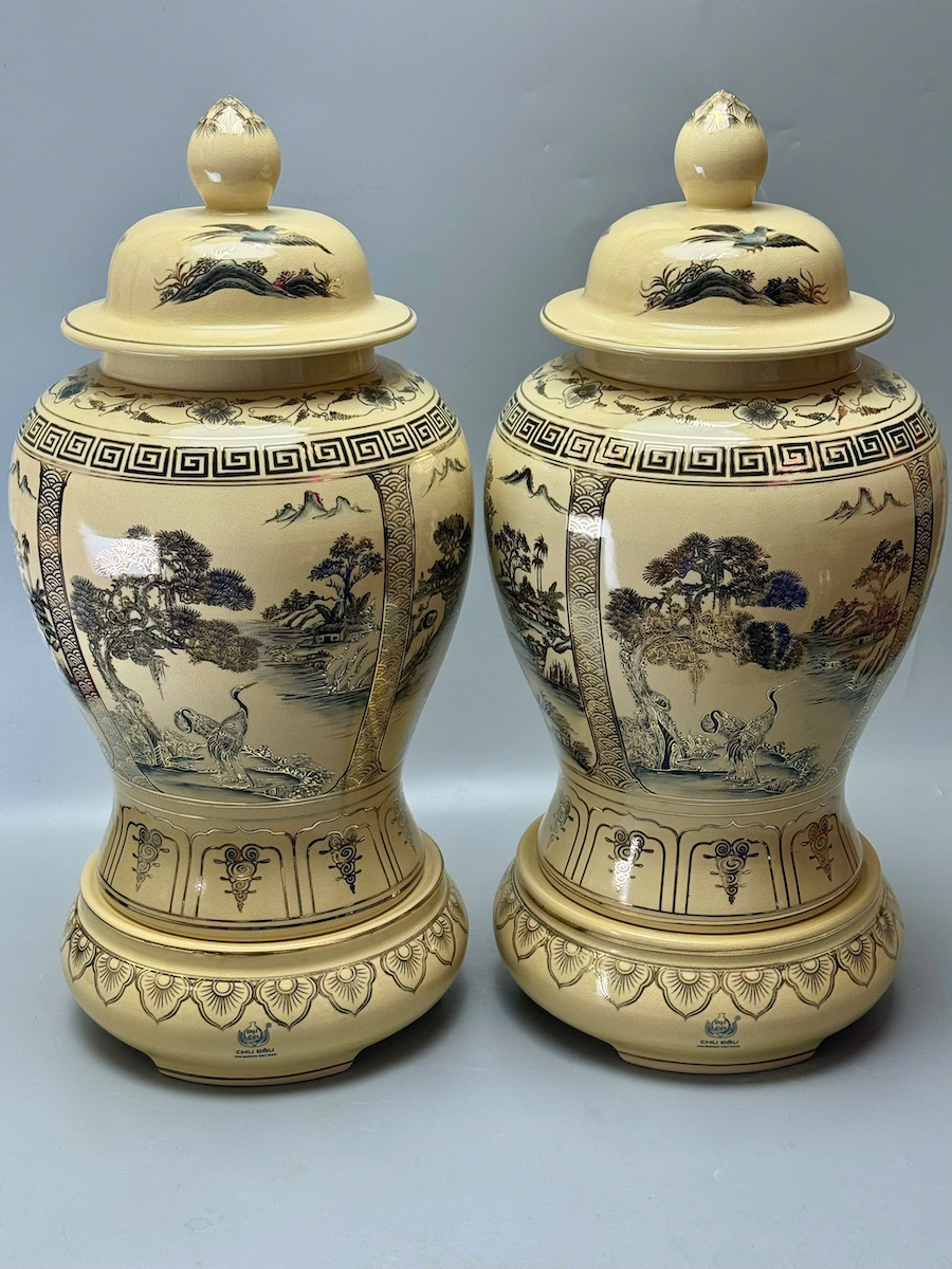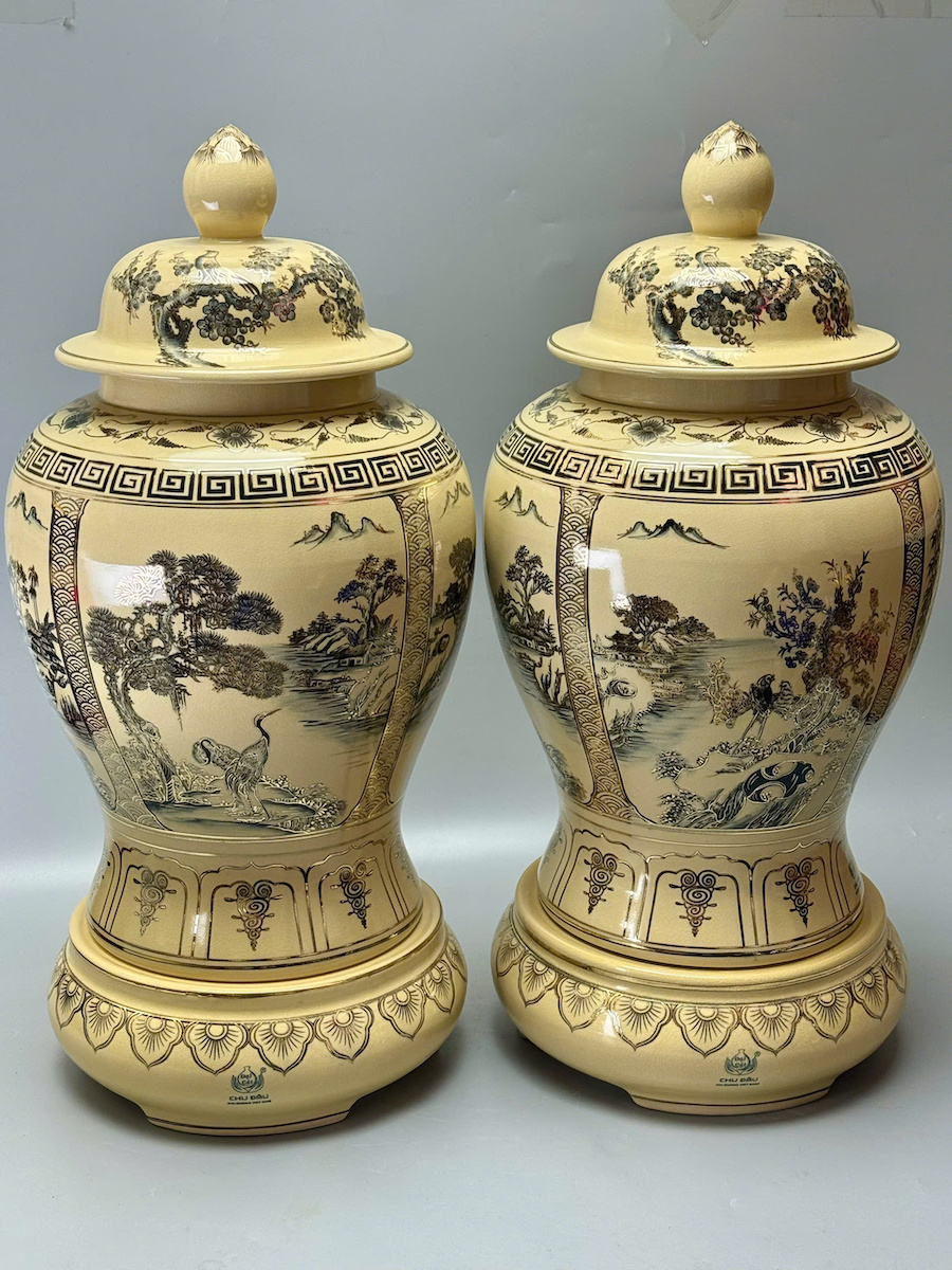 Đôi Choé Cao 72cm Hoạ Tiết Tứ Cảnh Sơn Thuỷ Gốm Chu Đậu Vẽ Vàng 24K