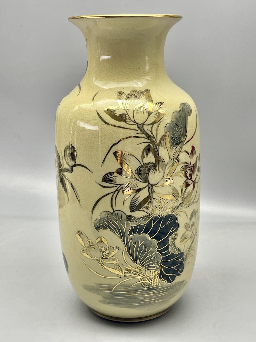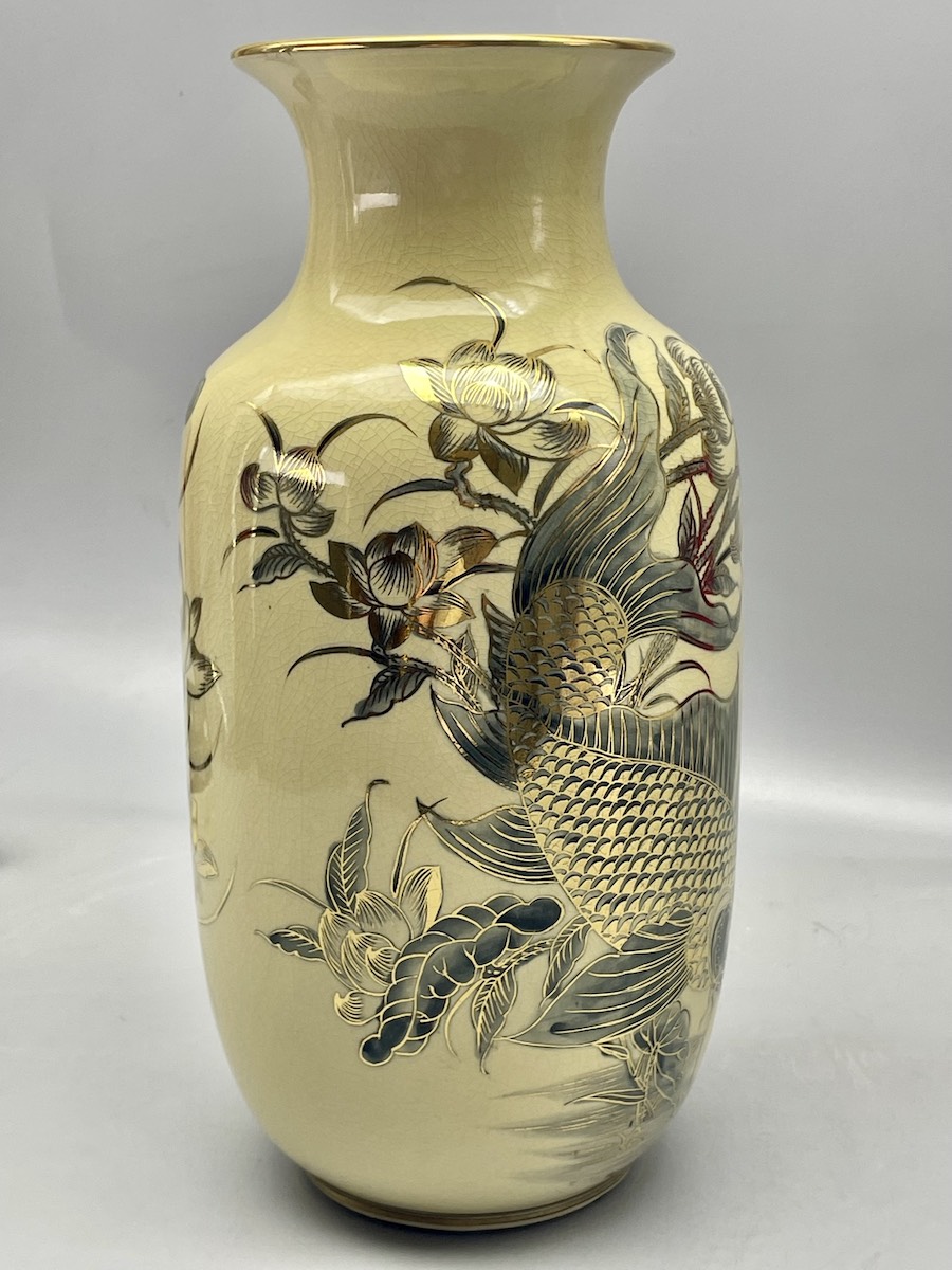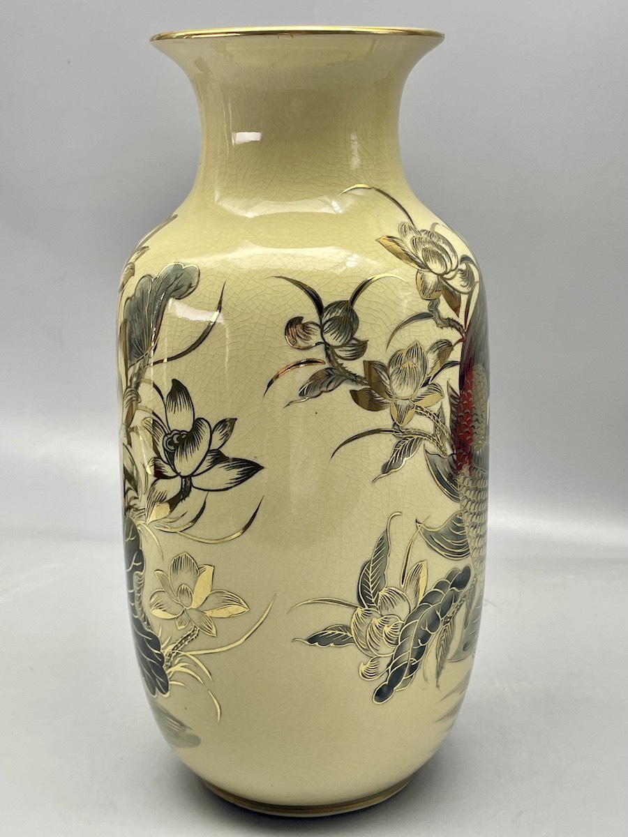 Lộc Bình Cá Chép Hoa Sen Gốm Chu Đậu Vẽ Vàng 24K RG-000549