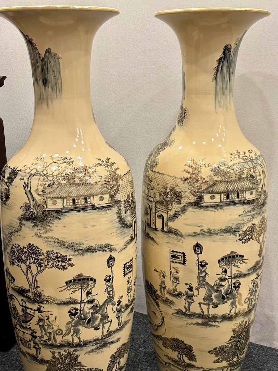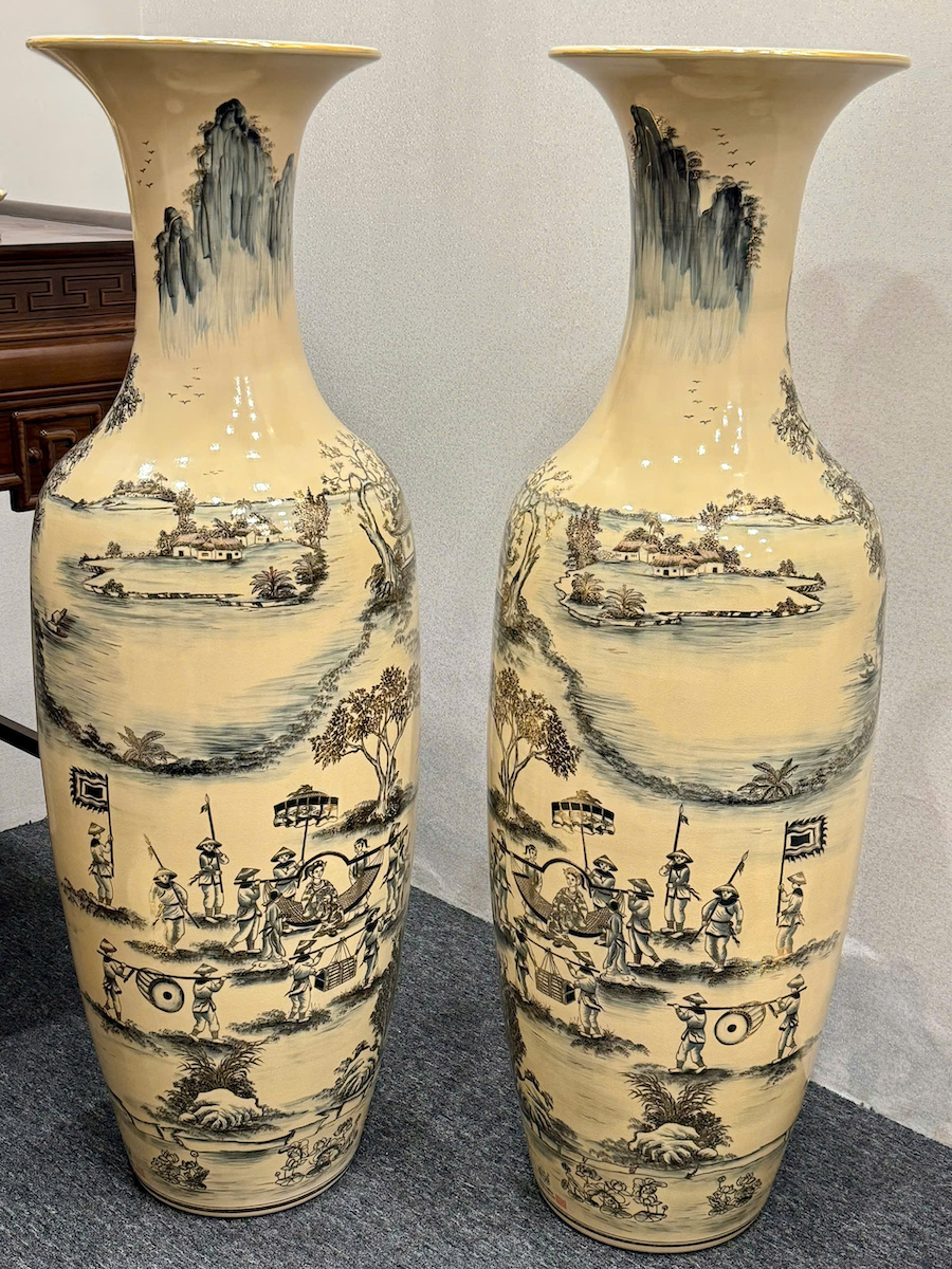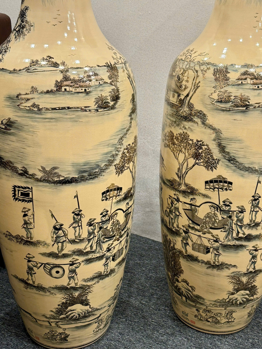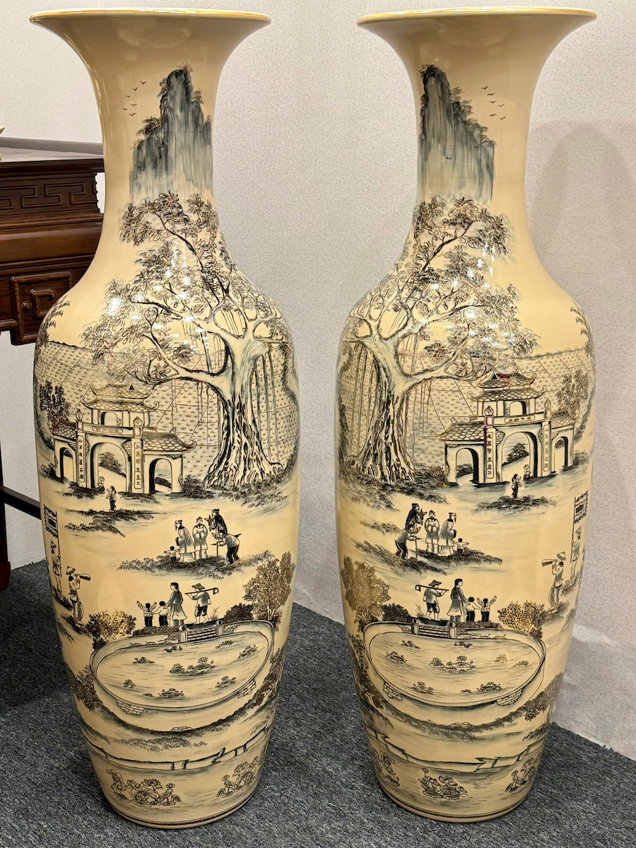 Lục Bình Cao 1,35m Cả Đế Hoạ Tiết Vinh Quy Bái Tổ Gốm Chu Đậu Vẽ Vàng