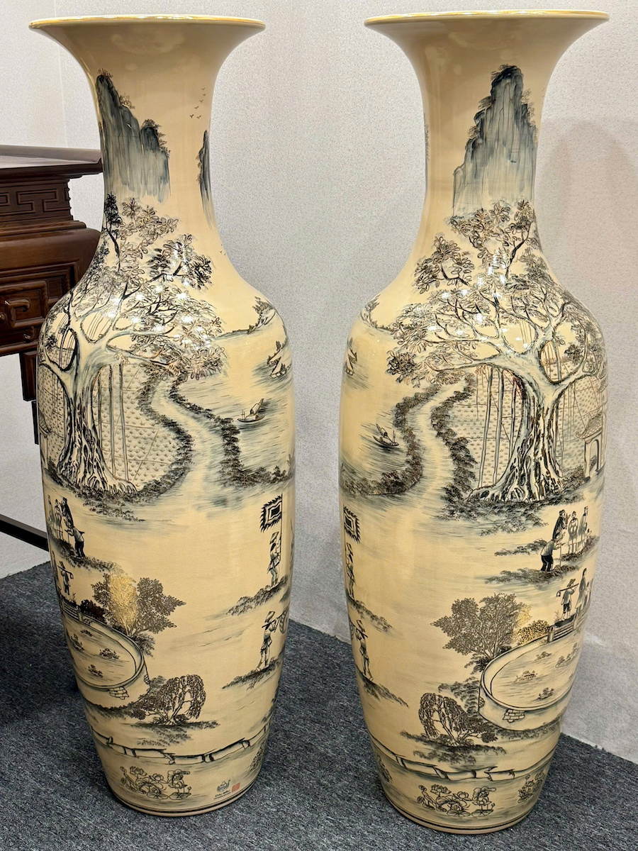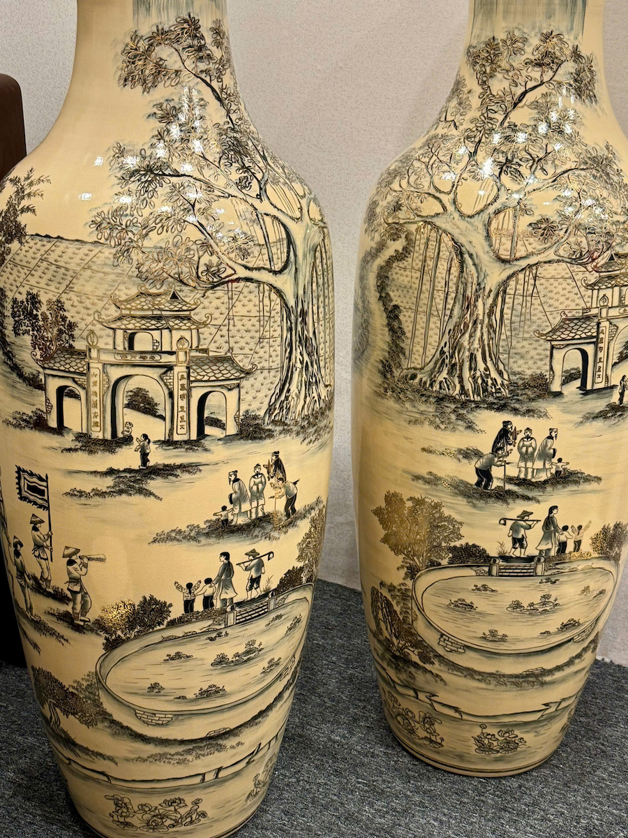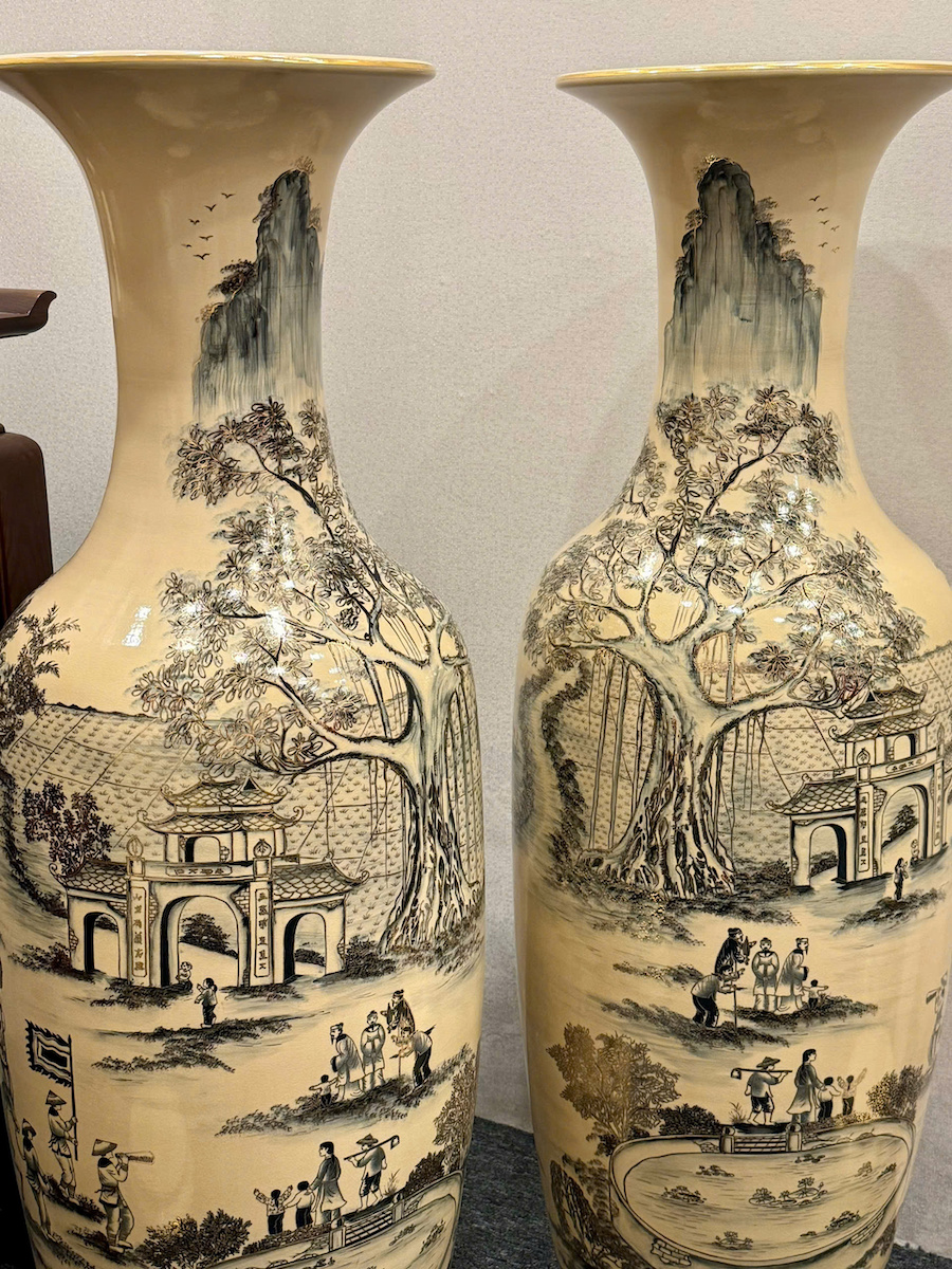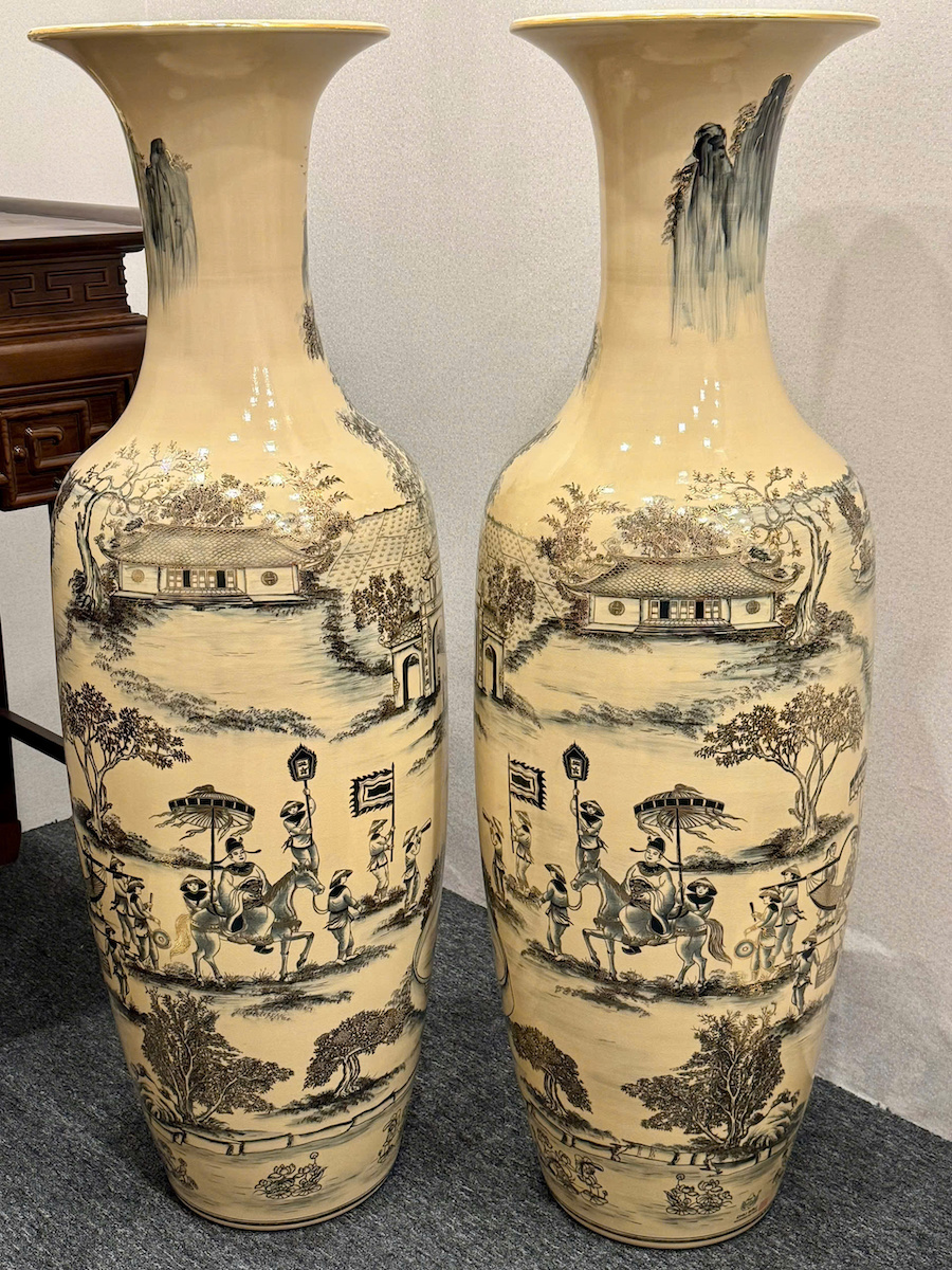 Lục Bình Cao 1,35m Cả Đế Hoạ Tiết Vinh Quy Bái Tổ Gốm Chu Đậu Vẽ Vàng